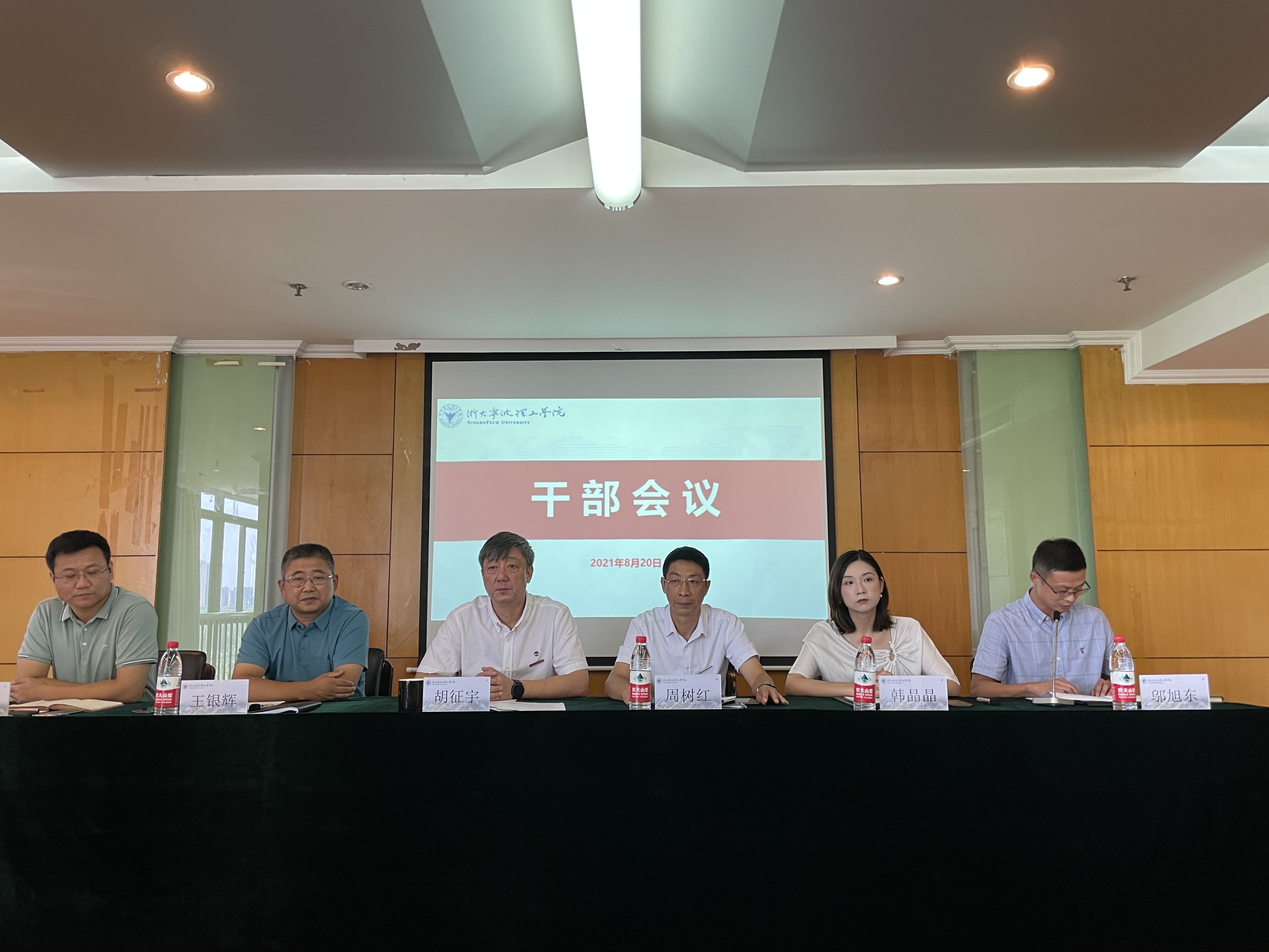 8月20日上午,bw必威西汉姆联官网干部任免会议在行政楼603会议室召开。校党委书记胡征宇,校党委委员、组织部部长周树红,bw必威西汉姆联官网党政班子、系所(中心)负责人、党支部书记、副主管及以上干部、高级职称教师代表等参加。会议由学院党委书记王银辉主持。