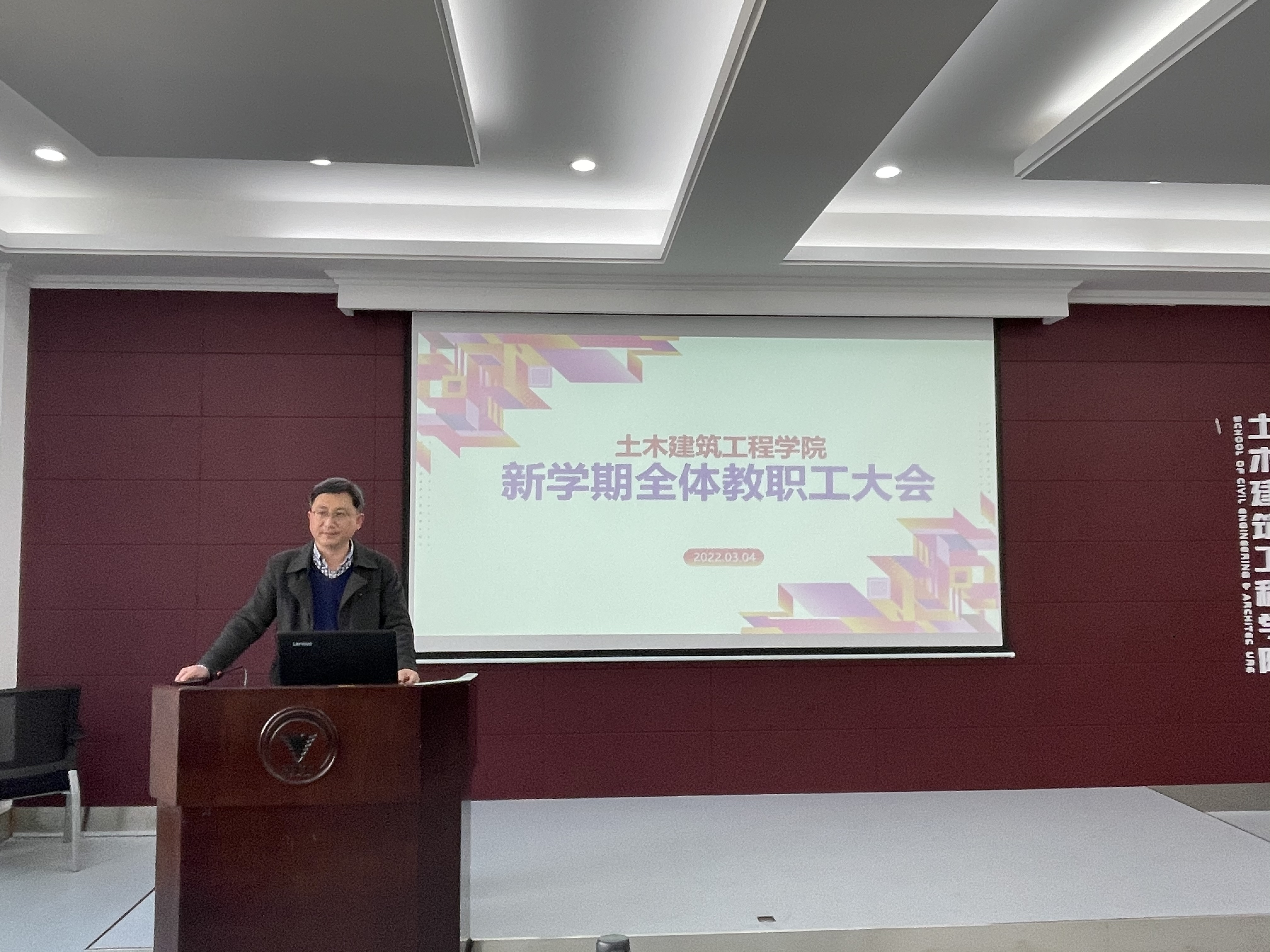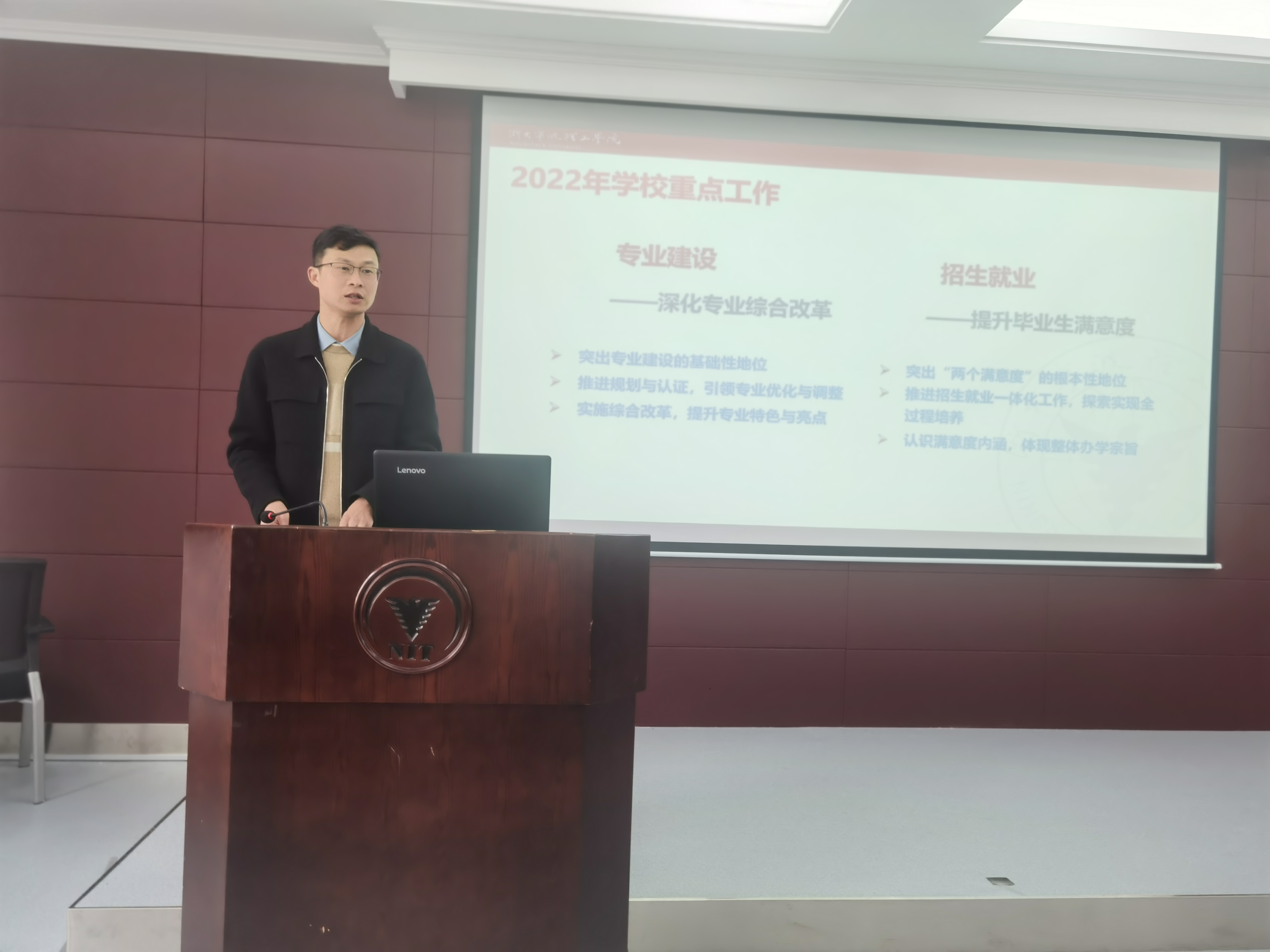 学院副院长王文军布置2022年教学工作重点任务。他介绍了本学期专业认证工作安排,通报了学校目前专业认证情况,解读了省、市、校关于教育教学新的规章制度。他要求所有课程要按照达成度要求进行分析,全院上下要无条件支持专业认证工作的开展,确保2022年提交专业认证申报书。