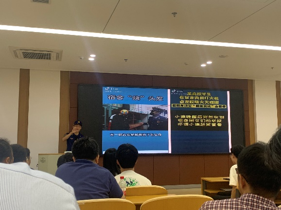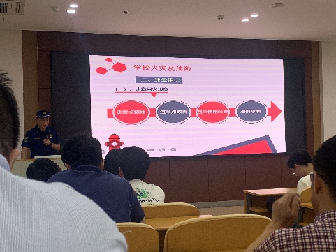 本次活动包括消防知识讲座及消防演练两项。首先,首南消防救援站班长黎健为师生讲解了消防器材的使用方法和施救逃生等相关知识。通过近几年发生的校园火灾案例,结合视频展示了火灾发生的原因及后果,让大家对火灾及消防器械的使用方法有了深刻的认识。演练结束后,全体师生以消防演习的方式疏散至学术交流中心门口广场,进行灭火器灭火实操培训。