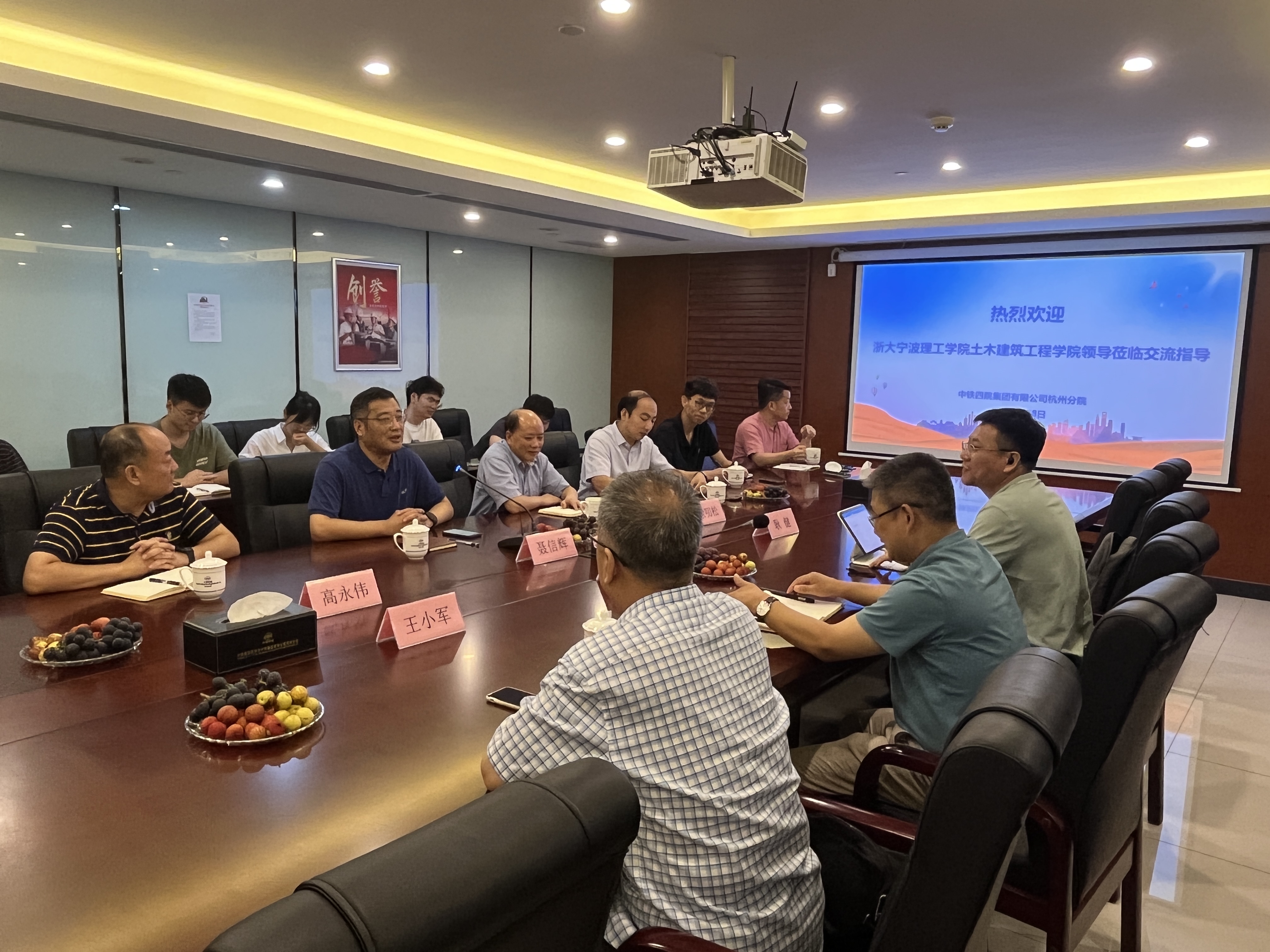7月8日,bw必威西汉姆联官网党委书记王银辉、副院长耿健、智能建造与智慧管理研究所教师王小军教授走访了中铁第四勘察设计院集团有限公司杭州分院(铁四院杭州分院)。铁四院杭州分院院长聂信辉、副院长徐叨松、总工程师高永伟等出席会议。在该单位工作的杨磊、厉家豪、林雅静、袁志洪4名校友参加了座谈交流。