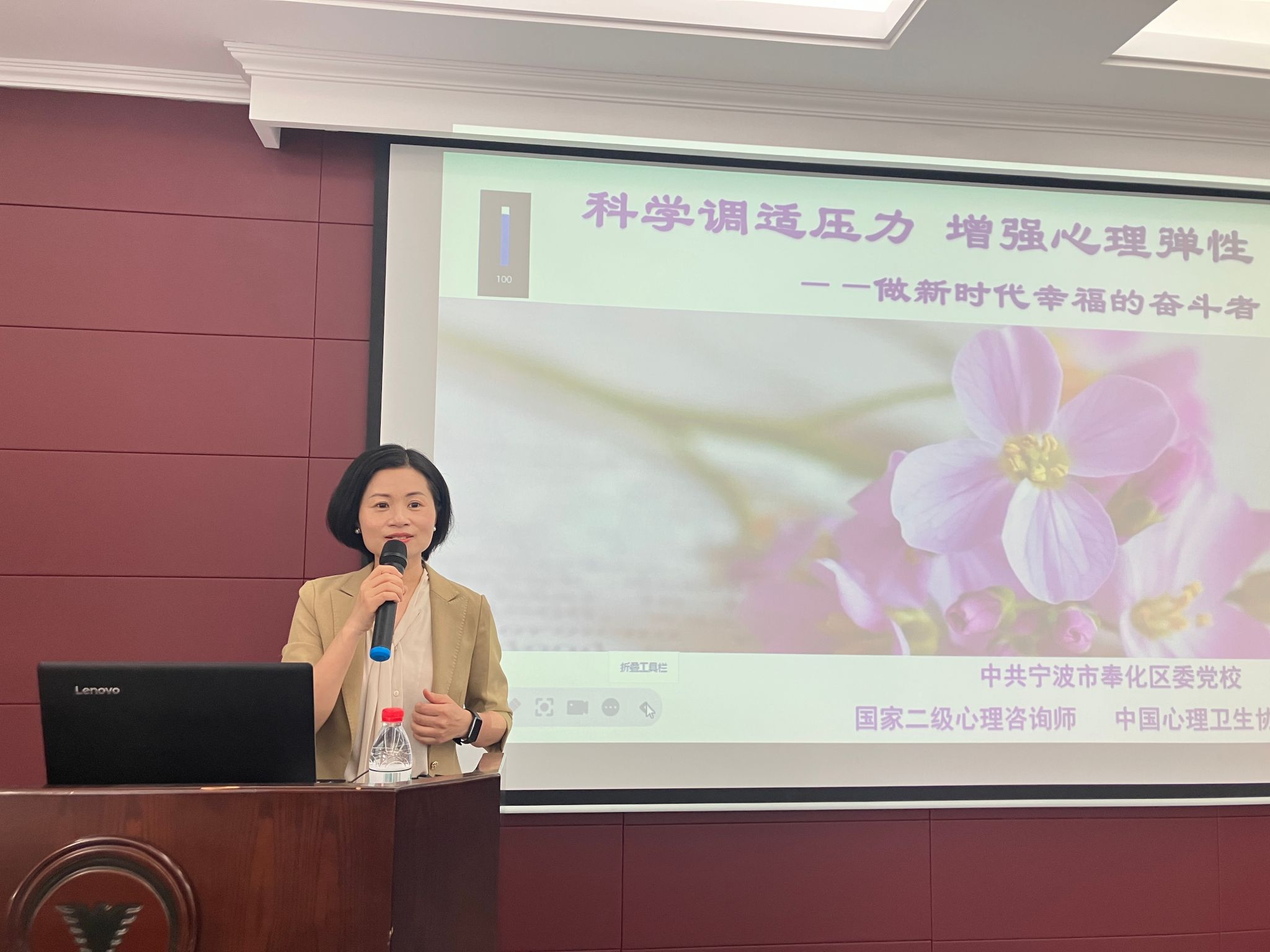 邬老师从心安国安,加强对心里健康关注的重要性,分析压力来源,阐述了内外部因素的共同影响。从饮食调整,强身健体,如何找到符合自己的减压方式等方面,引导实现积极情绪,在压力中绽放阳光心态,感受幸福人生。教工们认真聆听,在邬老师的引导下,大家积极互动,进行自我压力评价,相互分享日常减压方式。正如习近平总书记说的“新时代是奋斗者的时代,奋斗者是精神最为富足的人,也是最懂得幸福,最享受幸福的人。”学院将通过砼馨荟,帮助教工们调适压力,实现“快乐+意义=幸福”的工作和生活状态。