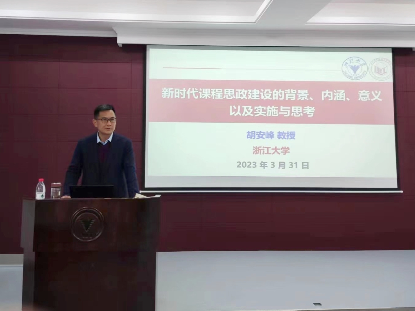 3月31日上午,学校第三十三期“名师有约”如期举行,浙江大学胡安峰教授应邀作题为《新时代课程思政建设的背景、内涵、意义以及实施与思考》的报告。本期“名师有约”由教师教学发展中心、bw必威西汉姆联官网联合举办。bw必威西汉姆联官网副院长王文军主持报告会。