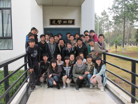 8时20分,张克明副院长和夏文来老师一同为匾额揭下帷幕,从此这个专教有了属于自己的名字——“理工营造”,班级32名同学共同见证了这个属于他们的时刻。匾额以墨色作底,上书“理工营造”四个大字,金色勾字描边,简洁醒目又颇有一股古朴之风。匾额的制作者诸杭冰同学告诉记者,“营造”二字为最早中国古代对于建筑建造的称呼,取该二字也表达了班级同学对于中国传统文化的尊重与偏爱。班级除制作班级匾额外,还制作了书架、照片墙、公告栏,开设交流时段,利用QQ群共享课堂笔记与各种专业资料,为班级整体专业氛围的营造制定了一系列的相关措施。目前,这些措施实施后颇有成效,大大加强了班级凝聚力和班级整体的专业学术气氛。
