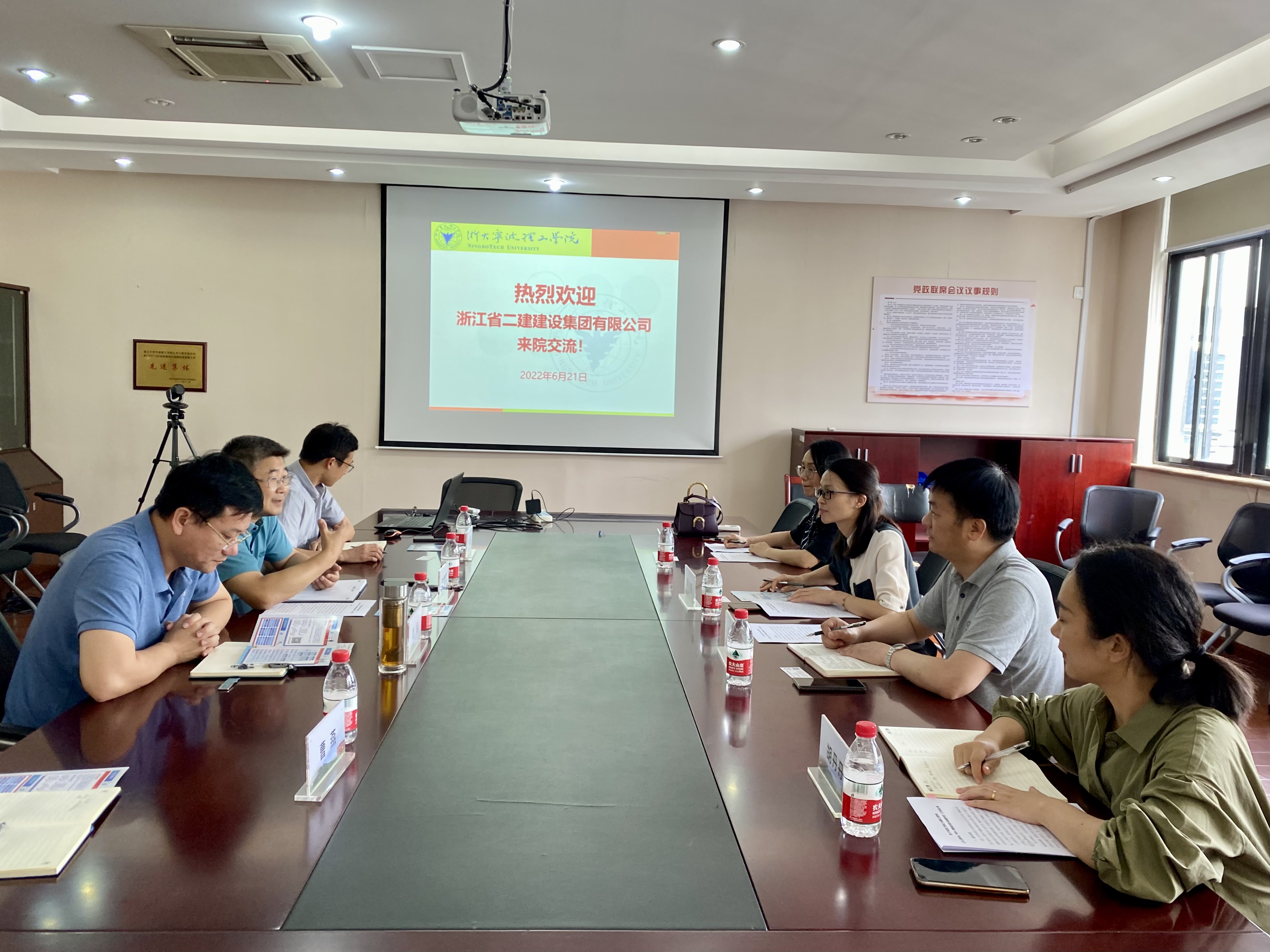 为推动校企战略合作,进一步搭建校企交流合作平台,促进产学融合,建立人才培养新模式。6月21日下午,浙大宁波理工学院bw必威西汉姆联官网邀请浙江省二建建设集团有限公司来校交流本科人才培养相关工作。