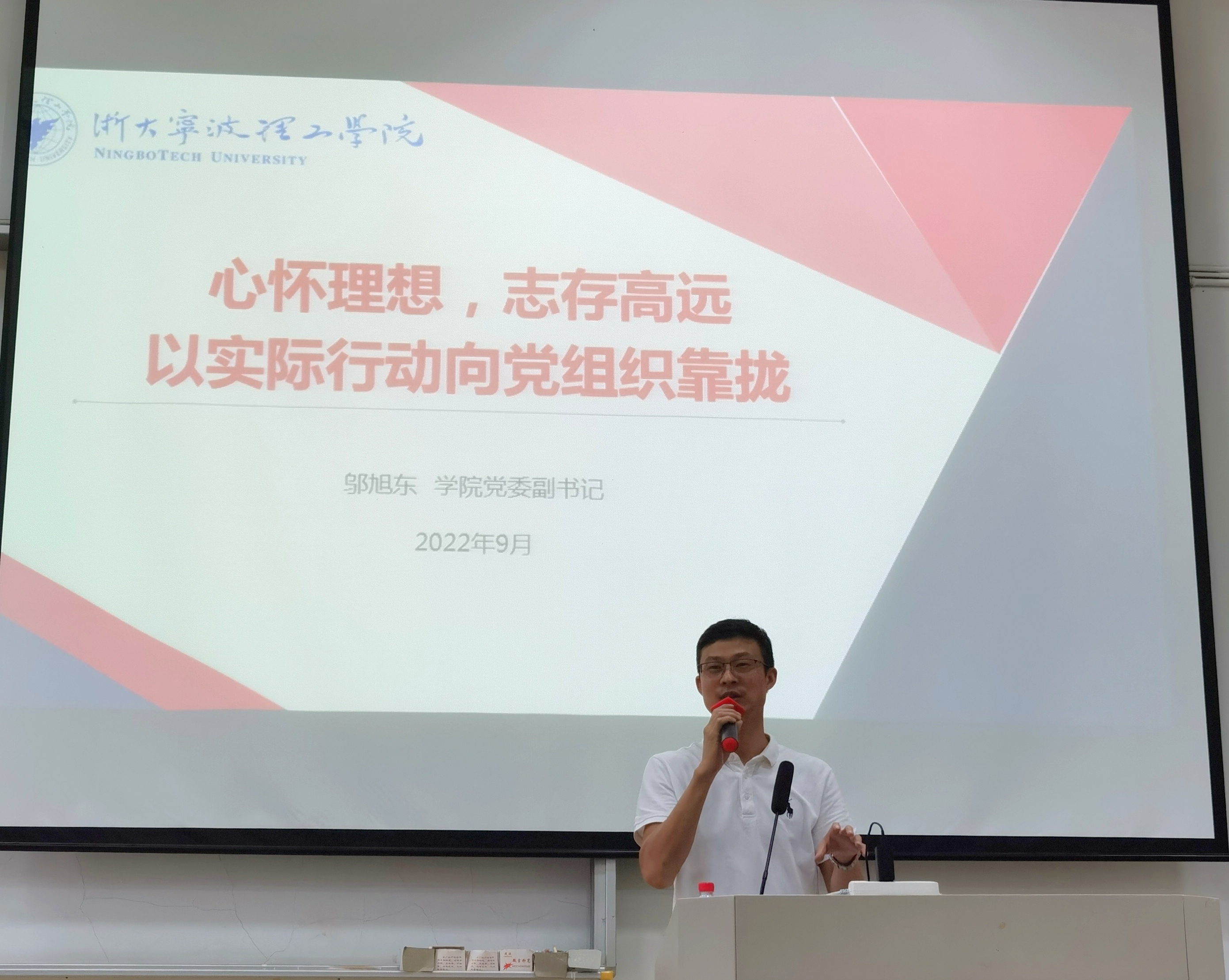 邬老师以“心怀理想,志存高远——以实际行动向党组织靠拢”为主题,从学院党委基本情况介绍、党的基础知识、党员发展的组织程序以及怎么撰写入党申请书几个方面给新生做专题报告。