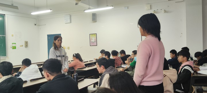 陈老师在课堂上与同学们进行互动,了解新生们对于恋爱观和婚姻观的理解和认识,以富有亲和力的方式与同学们进行了交流。