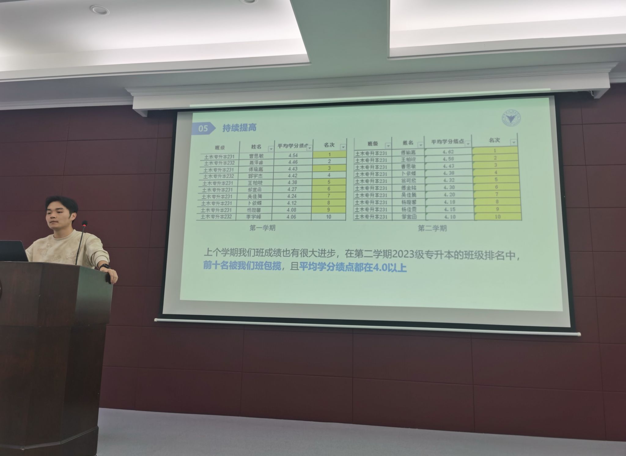 在此次评比中,各班代表从班级建设、学习纪律、学习成绩、寝室建设、集体荣誉等方面切入,对上一学年自己班级的具体情况进行了汇报,展现了各班同学认真学习、积极进取、专注创新的班级风貌。之后周星老师进行了总结,肯定了上一学年各班级在班级学风建设过程中的努力,并对在座班委的工作表示感谢。同时,她也指出了班级建设中存在的一些问题,希望同学们能相互学习,借鉴好的做法,争取下一学年有所改进。