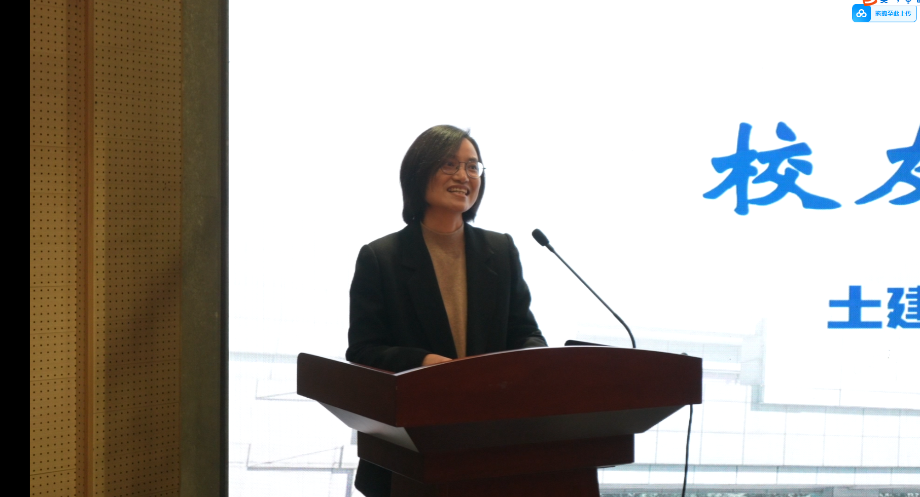 王成代表学院校友会第二届理事会作报告。她详细回顾了过去四年里校友会的工作和成就,分享了校友们在推动学院和学校事业发展做出的努力,对校友们的热心支持表达真挚感谢,也对校友会未来的发展表达无限期待。