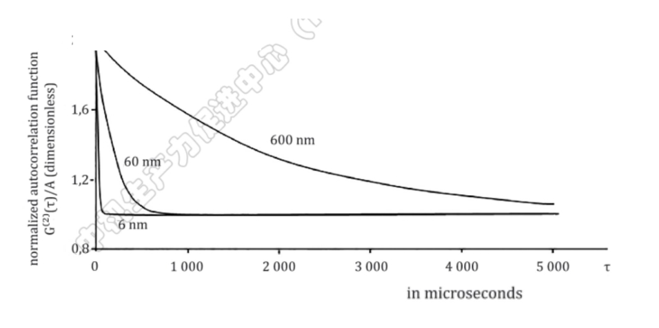 一种粒径的颗粒的动态光散射的自相关函数都是一条指数衰减函数。粒径越小,衰减速率越快。