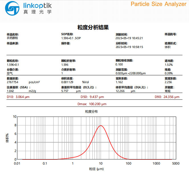 激光粒度分析仪在农化植保领域有着十分广泛的应用。早在十多年前,中国许多农药生产企业就已经开始将激光粒度分析仪应用于生产制备各种高性能的农药悬浮剂。他们通过混合搅拌、砂磨机等设备充分混合分散各种原料,包括农药原药、活性成分、溶剂、表面活性剂以及辅助剂,以达到预期的粒径分布。近年来,通过对悬浮液的分散体系进行系统研究,有效提升了农药的分散性并保持了良好的药效长期存放,从而开发出更高性能、更具竞争力的新型农药产品。同时,随着无人机技术的不断成熟和成本的不断降低,利用无人机进行自动喷淋和消杀技术替代了传统的人力施药方式得到了普及。所有这些都离不开科学的农药颗粒粒度测量数据的支持,这些数据为实现农化植保的减量增效目标提供了有力支持。