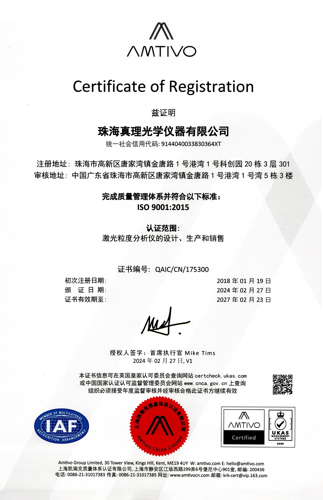 专利证书:一种带斜置梯形窗口的激光粒度仪201720195784.7