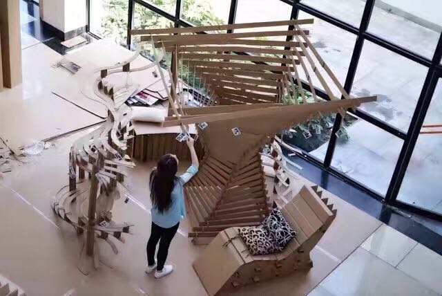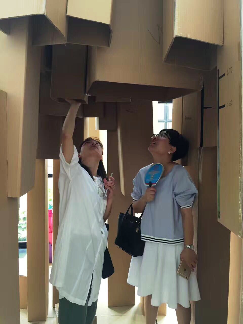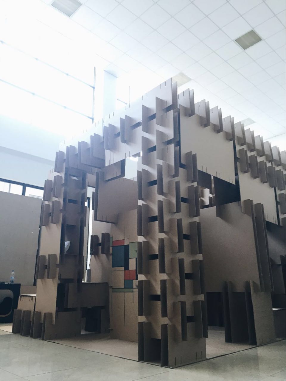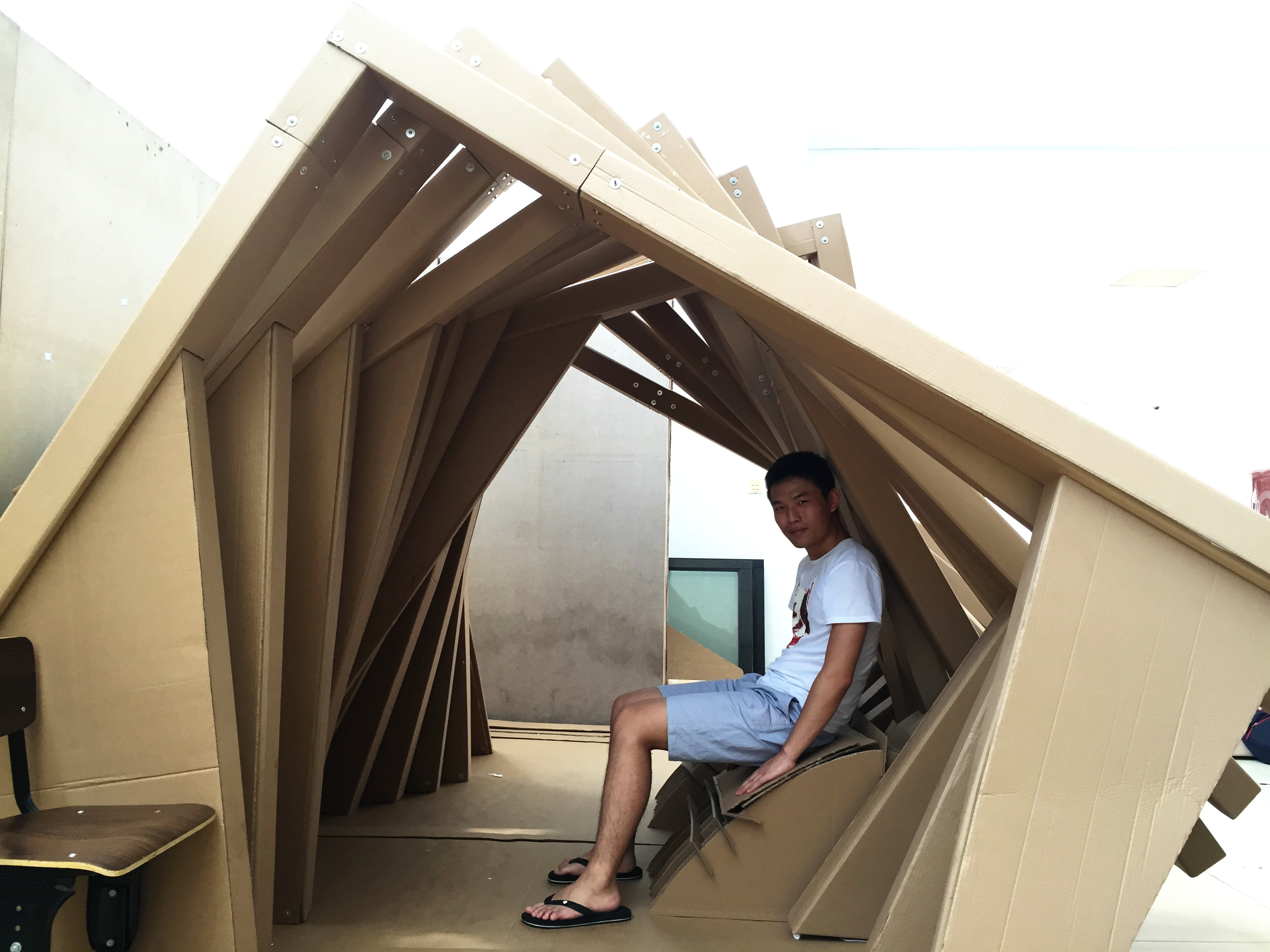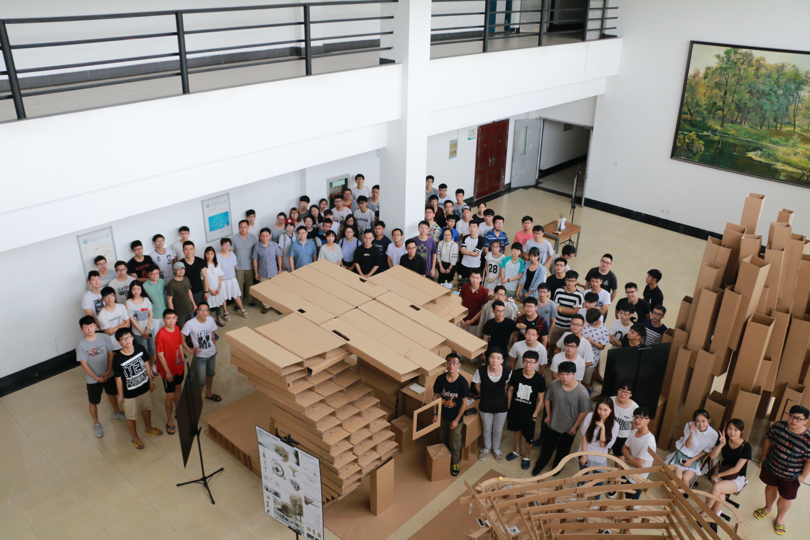 建筑营造实践是建筑学专业实践教学内容的一次重要尝试,通过动手去熟悉材料特性,推敲构造方法,并将构思方案通过瓦楞纸去实现。我们从中学会了团结与合作,交流和对话,理解和尊重。这是一次有关瓦楞纸的“命题作文”,使我们的学习由纸上谈兵,跨越到用纸练兵。这个火热的夏天,我们又在建筑的道路上前进了坚实的一步。