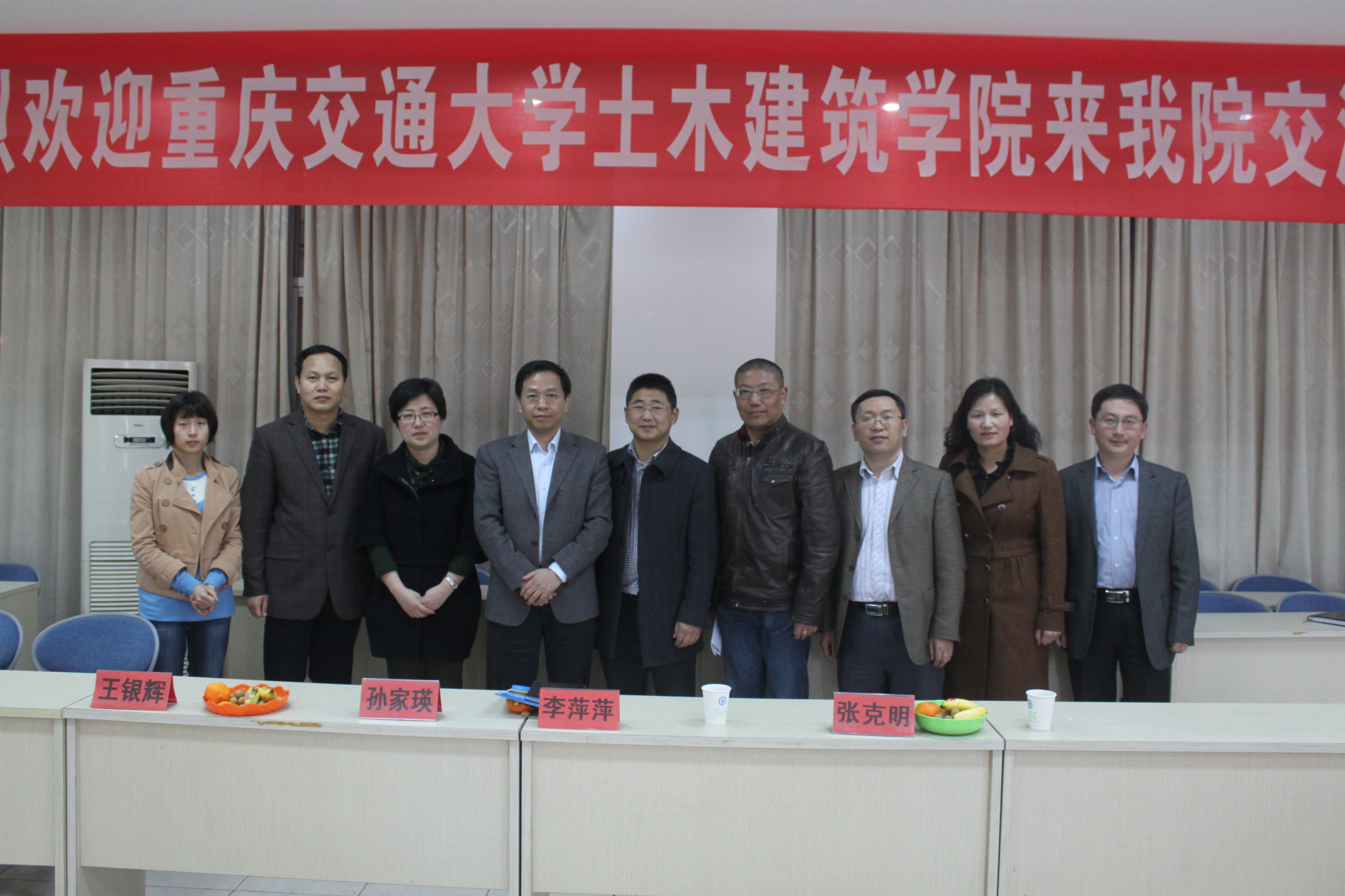 4月2日下午,重庆交通大学土木建筑学院院长吴国雄、副院长张学富、系主任周水兴等5人来我院进行交流访问。学院总支书记李萍萍在SA301热情接待了吴院长一行,参加会谈的还有学院副院长张克明、孙家瑛、王银辉及各研究所负责人和部分教师代表。