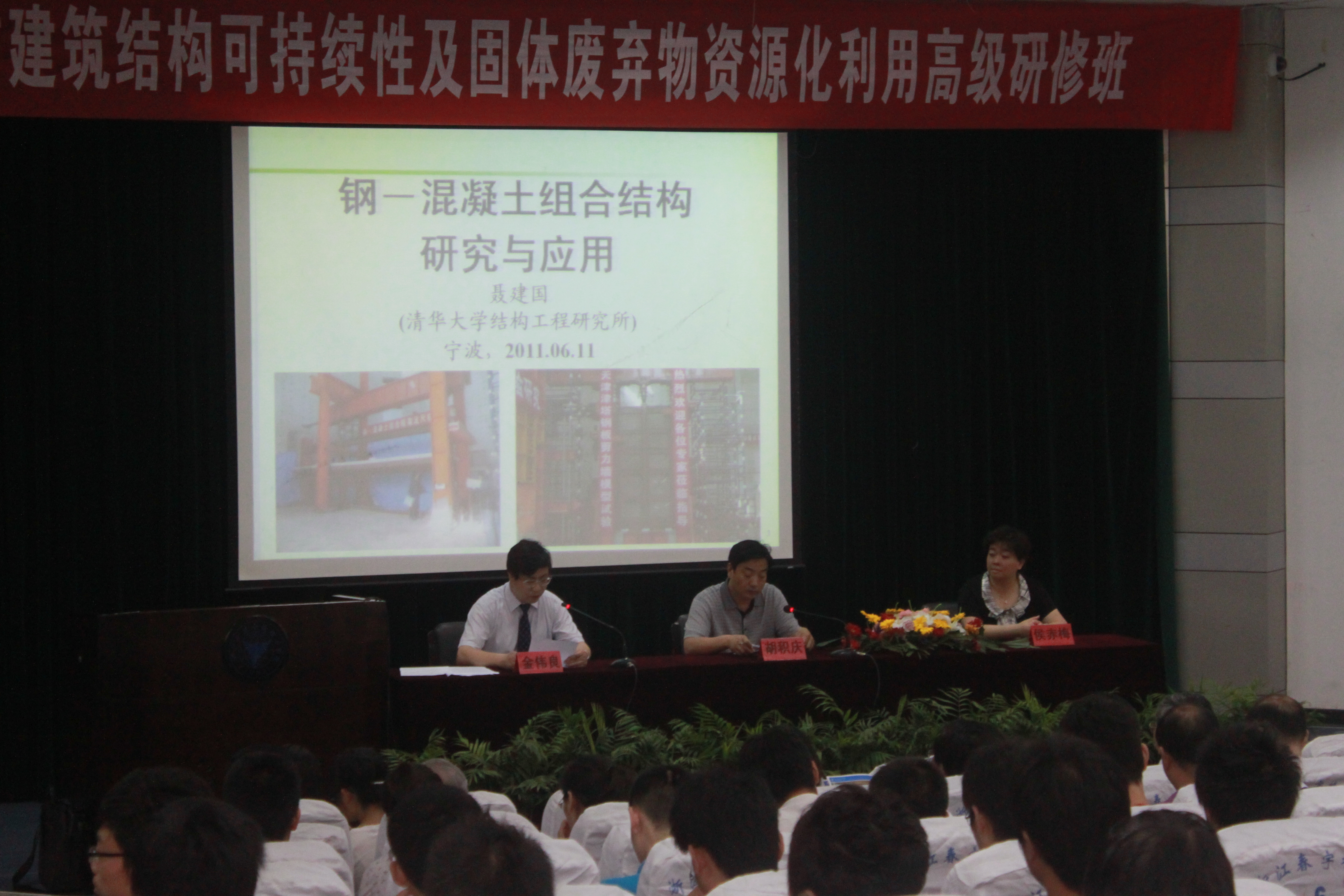 6月11上午,宁波市建筑结构可持续性及固体废弃物资源化利用高级研修班在我院NF103正式开班。本班为2011年度市级专业技术人员自主创新能力高级研修班16期的内容之一(同时被批准为省“151人才工程类高级研修班),由宁波市人力资源和社会保障局委托我院承办,主持人为我院院长金伟良教授。本班学员60余人为省内土木建筑企(事)业单位及相关单位高层管理人员、中高级专业技术人员,高校及研究机构相关人员。宁波市人力资源和社会保障局培训教育处处长胡积庆出席了上午的开班仪式。