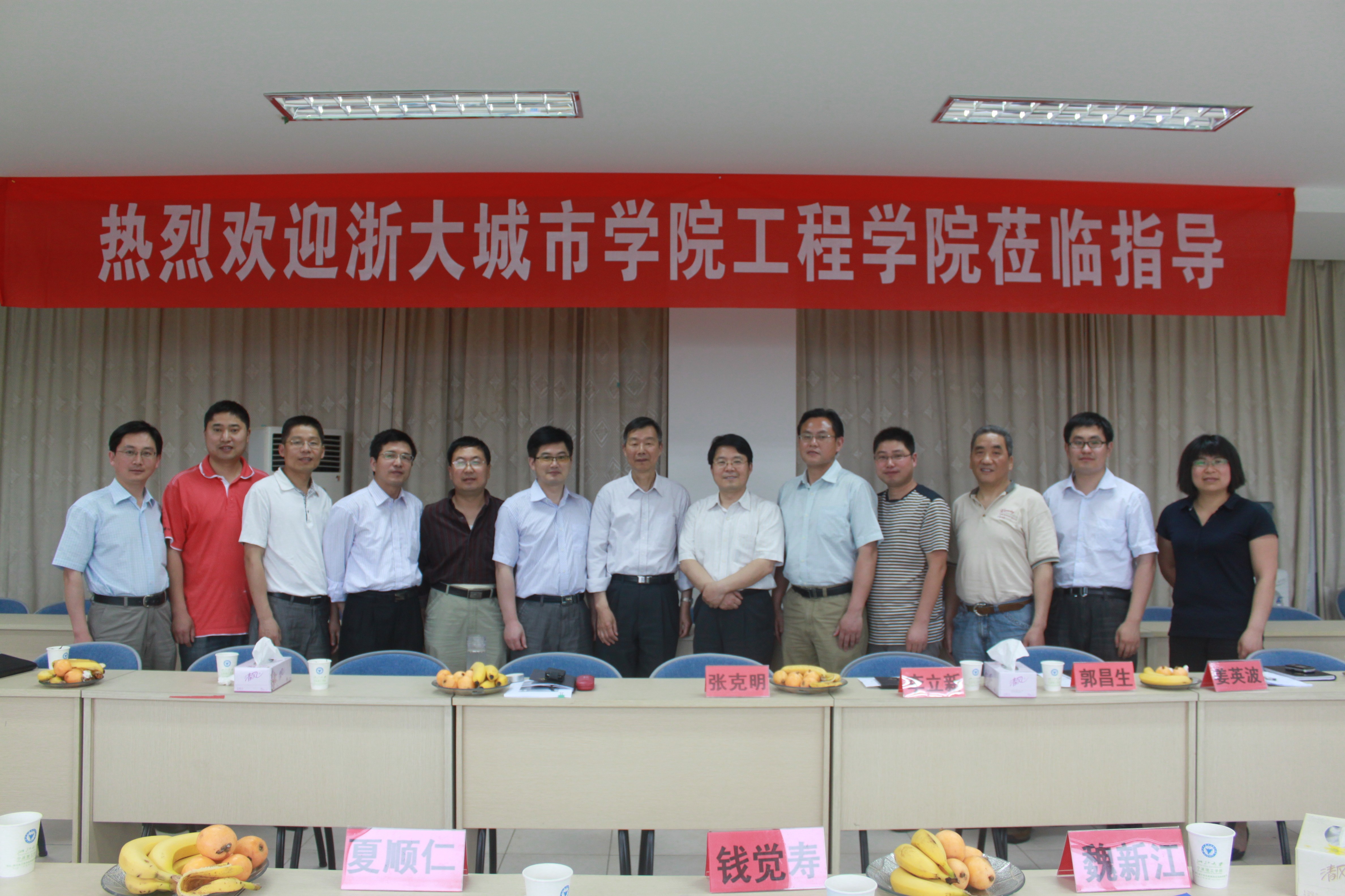 5月11日下午,浙大城市学院院长助理夏顺仁教授携学院人事部部长李向晟、科研部部长钱觉寿、副部长郑增威、工程学院常务副院长魏新江、土木系主任张世民等一行8人前来我院进行交流和访问。土建分院院长孙炳楠代表分院对夏顺仁教授一行表示热烈的欢迎,副院长张克明、王银辉,土木工程研究所、工程管理研究所、建筑与城市规划研究所及土木工程实验中心负责人及相关老师参加了会谈。