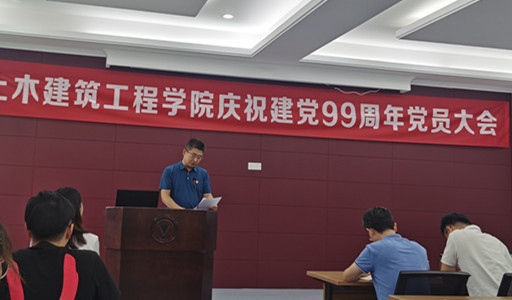 2020年6月29日,在中国共产党建党99周年来临之际,bw必威西汉姆联官网党委在SA305报告厅召开庆祝建党99周年党员大会。学院党委委员、学院纪委委员、全体党支部书记、教工党支部支委和全体学生党员到场出席,此次庆祝大会由学院党委副书记、纪委书记韩晶晶主持。
