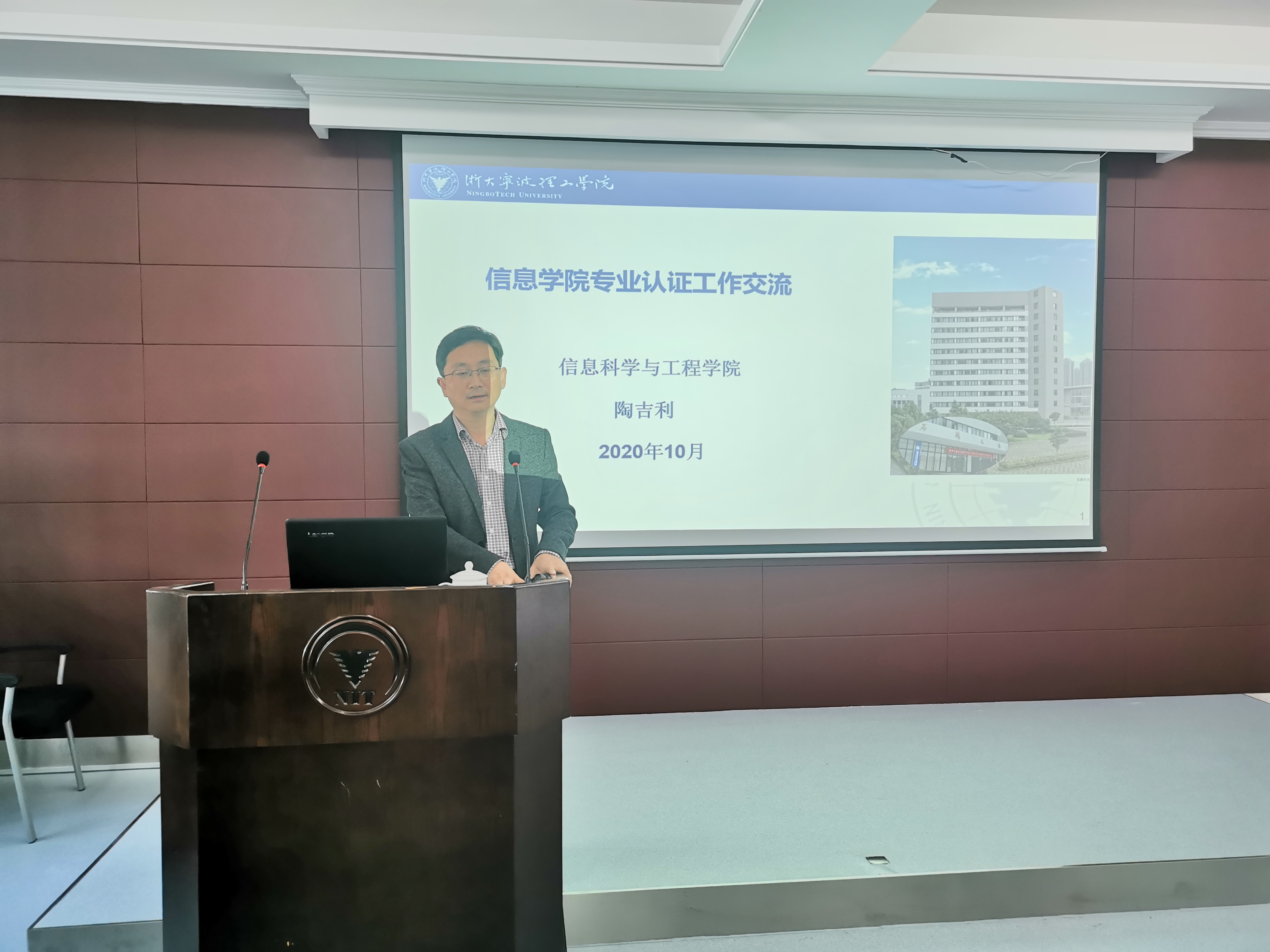 会上,陶吉利教授详细介绍了工程教育认证关于“以学生为中心、以产业为导向、持续改进质量”的理念与新要求,并结合信息科学与工程学院近年来开展的专业认证相关准备工作,分享了3闭环反馈持续改进机制建设、任务指标点分解、评价机制建设、日常材料积累、申请书撰写等方面的经验,具有丰富的借鉴指导意义。在座老师们还就课程目标设定、达成度评价等方面与陶吉利教授进行了交流。