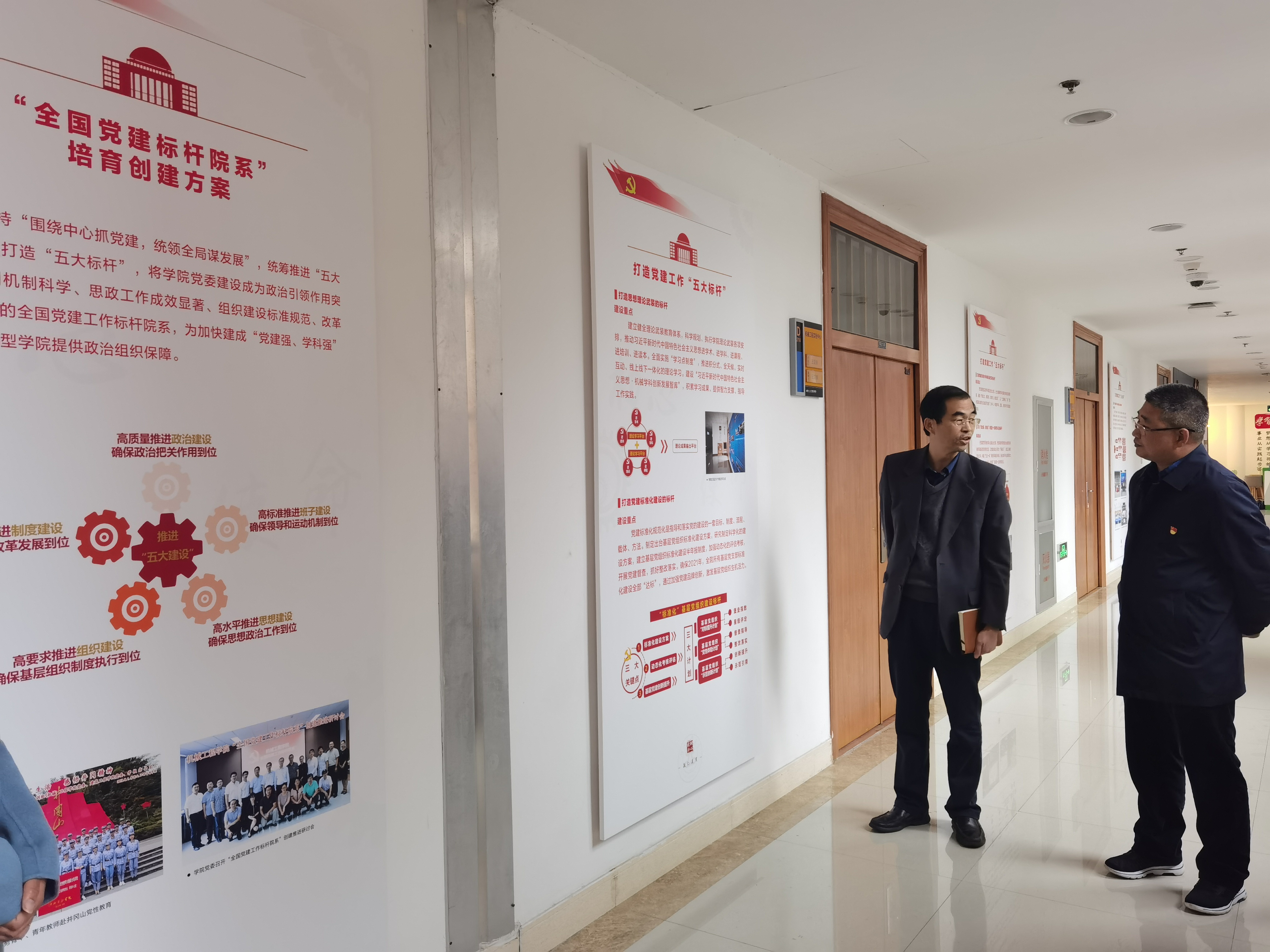调研团一行首先来到机械工程学院参观党建工作标杆院系整体文化墙和ME学生中心,机械工程学院潘柏松书记介绍了机械学院的基本情况和全国党建工作标杆院系培育创建方案。我院王银辉书记简单介绍了此次调研的目的,希望围绕着标杆院系建设和教工党支部建设等主题,借鉴机械学院在创新教工党支部活动方式、载体方面的典型经验做法。潘柏松书记详细介绍了机械学院党建与中心工作一体化的建设思路,组织员、教工支部书记代表分别介绍了教工支部书记主题党日活动和政治理论学习的典型经验做法,包括“课堂思政一刻钟”和“你听我讲·我讲你改”等创新学习方式和载体,令我院调研团受益良多。双方辅导员就提升大学生科研能力以及制定“挑战杯”、“互联网+”创业大赛等竞赛的激励机制进行了探讨和深入交流。
