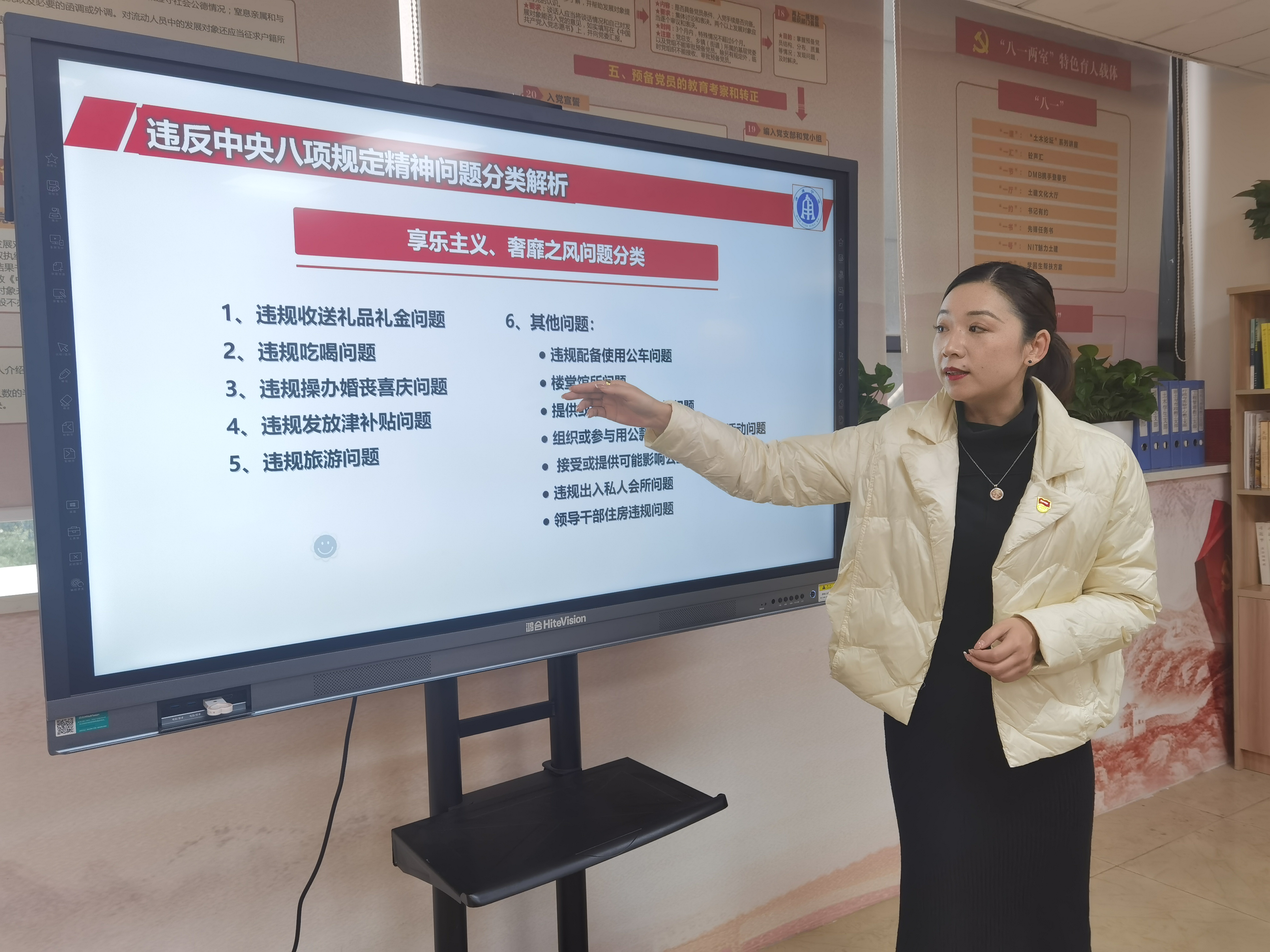 会上,学院党委副书记、纪委书记韩晶晶详细讲解了《落实中央八项规定精神纠治“四风”工作实务》,内容涵盖享乐主义、奢靡之风、形式主义和官僚主义四风问题的分类界定、违反中央八项规定精神的案例分析和需要注意把握的要点。随后,韩书记通报了收录在《党员干部违纪违法典型案例警示录》中的几起典型案例和浙江工业大学膜分离与水科学技术中心原主任助理兼办公室主任陈贤鸿的严重违纪违法案例,并对此进行了警示教育。