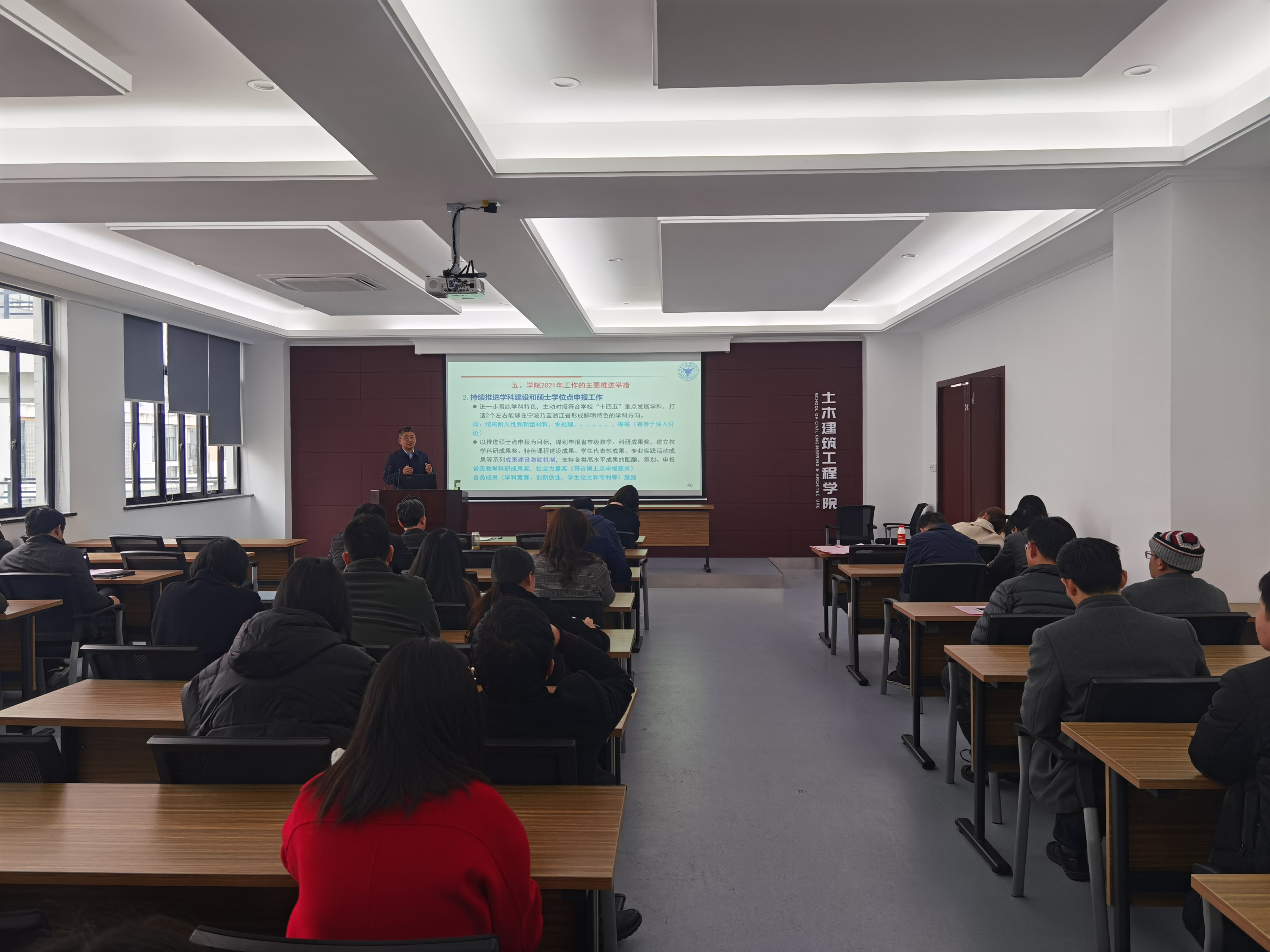 会上,党委书记王银辉教授首先通报了学校寒假务虚会议情况并传达了学校新学期工作会议精神,重点解析了学校“十四五”事业发展规划的各项主要指标和学校2021年十大重点工作,并介绍了学院领导班子2020年民主生活会和学院务虚会情况,就学院系所内部机构改革方案(讨论稿)进行了详细汇报。最后,王书记强调了学院2021年的五项重点工作及主要推进举措,一是加强政治理论学习,提升党建引领作用,二是持续推进学科建设和硕士学位点申报工作,三是持续推进专业建设工作,四是加强学院机构改革,推进民主办学工作机制,五是加强校友沟通,拓展学院“砼”文化建设。他指出,“十四五”是学校转制后加快建设一流应用型高校的关键性五年,而2021年是“十四五”规划开局之年,同时也是党的百年大庆和学校的20周年庆。bw必威西汉姆联官网要积极响应学校“省内一流、全国百强”的发展目标,进一步推进民主管理,加强党政班子与师生的交流,形成合力共同为学校和学院各项重点工作贡献力量!