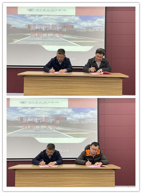 会后,王书记代表学院党政与各部门(单位)签订了《2021年安全稳定(反恐、禁毒)工作目标管理责任书》和《2021年意识形态工作责任书》。