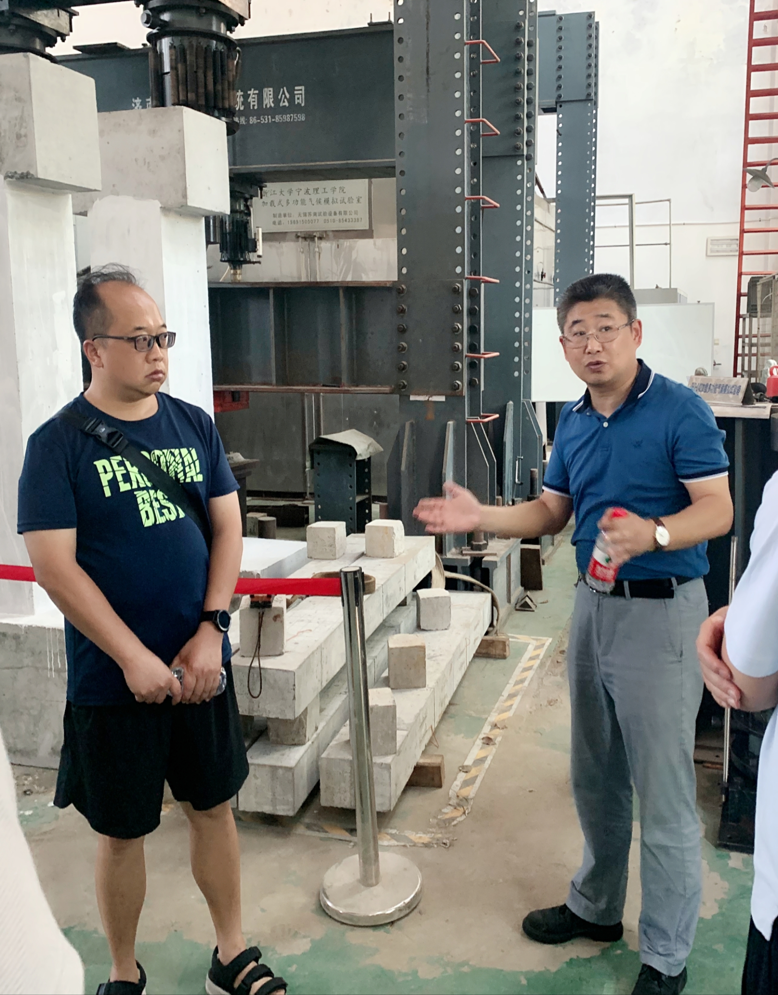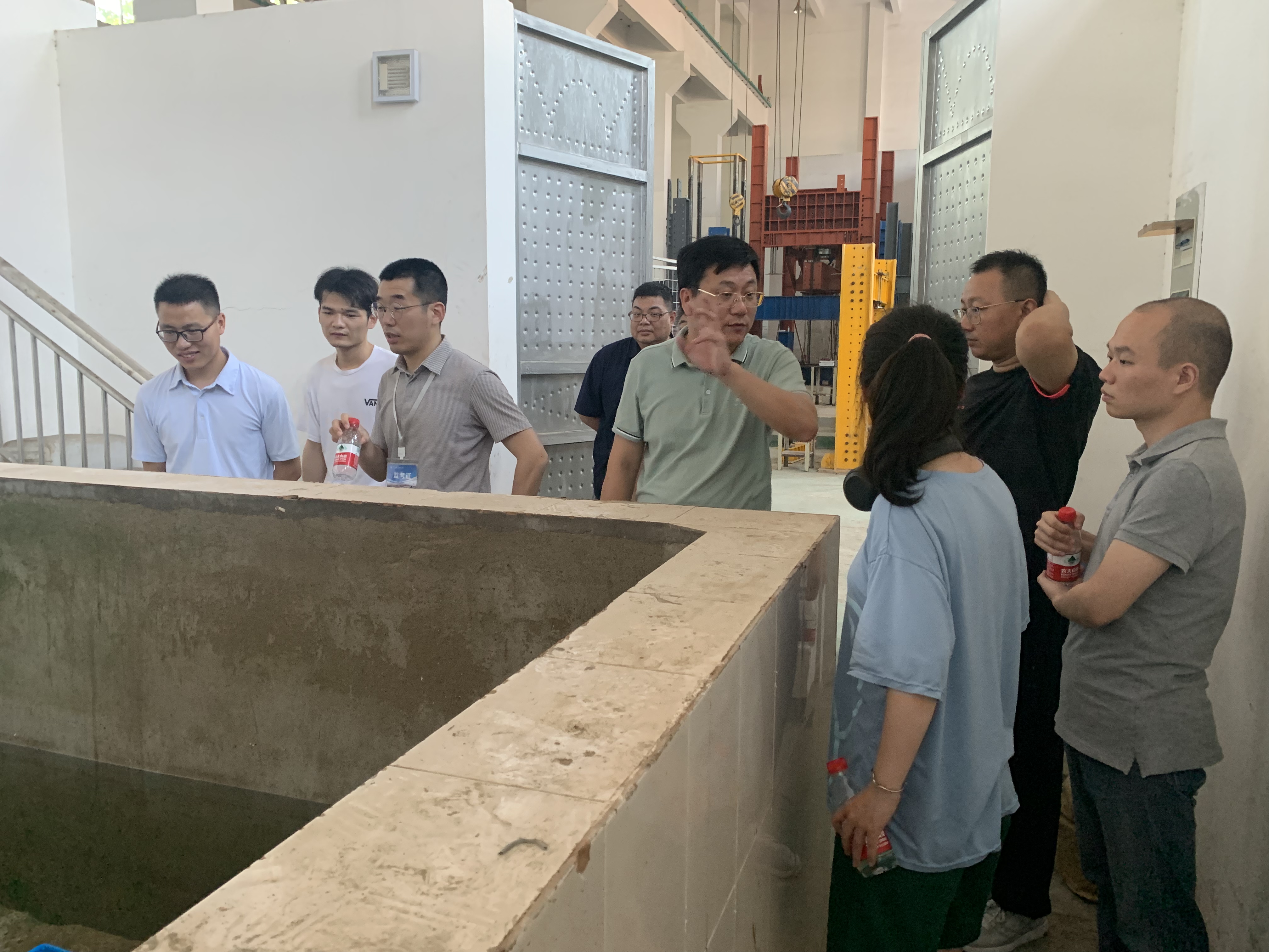 现场会上,王银辉书记与参会人员广泛讨论,做调研、谋策略、出方案。王书记先后检查了200t疲劳试验机等大型设备的运行情况,要求实验中心规范实验设备的管理,明确大型设备教师负责制,提高科研设备利用率。他对结构大厅、海洋环境模拟池、试件预制场的安全、卫生等工作做了详细指导,要求及时排查实验室安全隐患,清理废弃试验构件,合理规划试验场地,建立安全、整洁、高效的实验室科研环境。各负责老师也对设备维护、场地改造、材料采购等方面提出了建议。