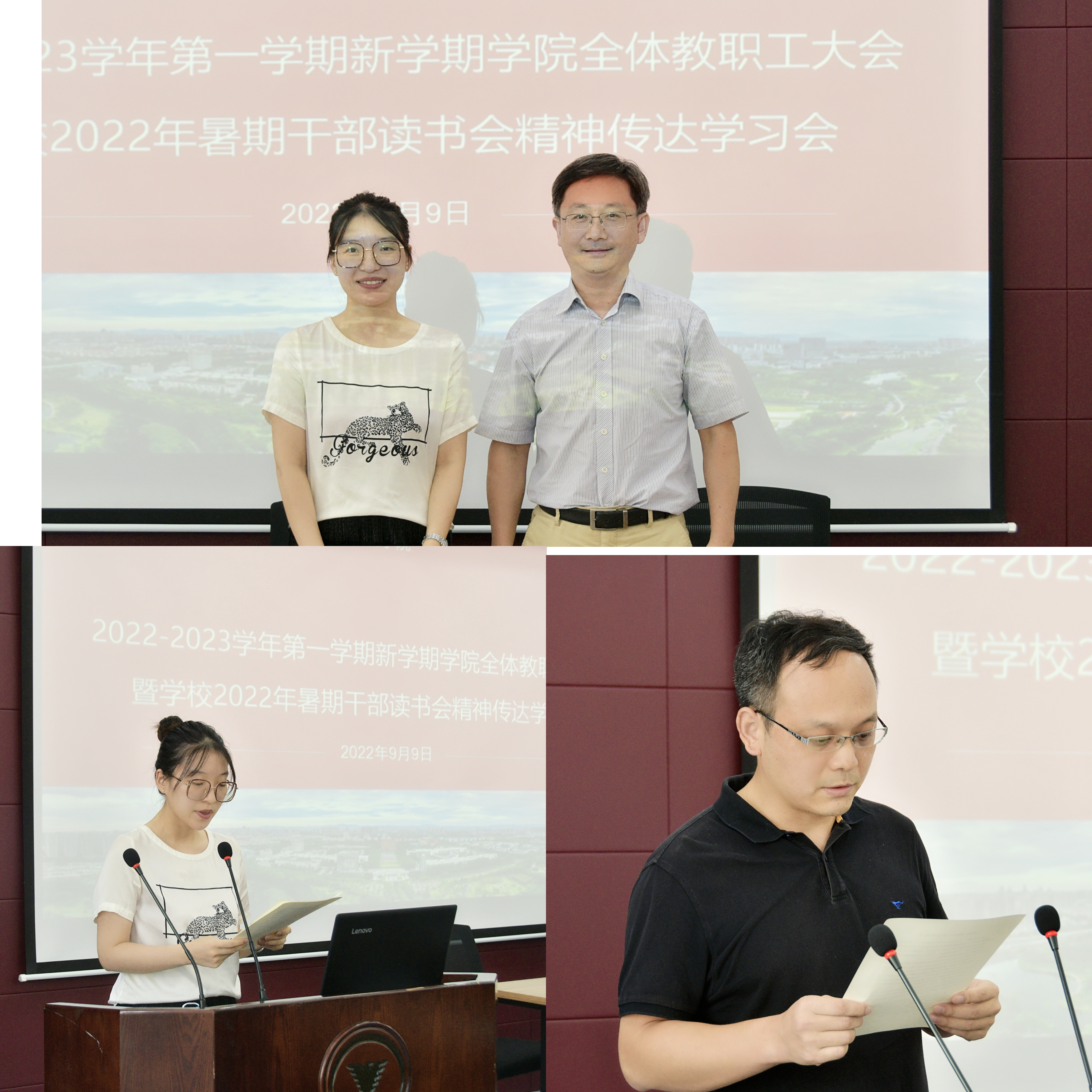 9月9日下午,bw必威西汉姆联官网召开了新学期全体教职工大会暨学校2022年暑期干部读书会精神传达学习会,学院全体教职工参加会议。会议由学院党委副书记、纪委书记邬旭东主持。