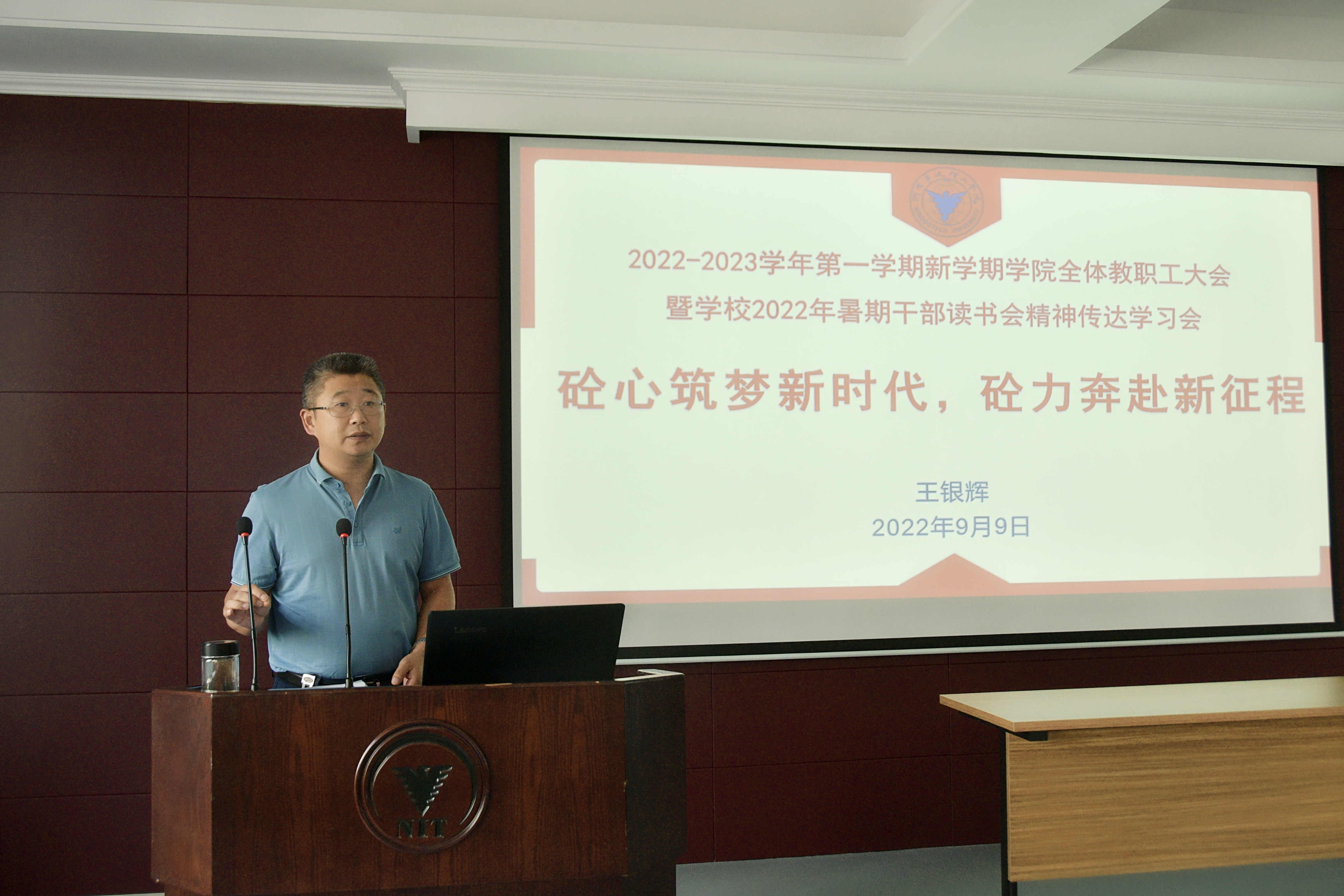 学院党委书记王银辉同志作主题为“砼心筑梦新时代,砼力奔赴新征程”的报告。他首先领学了习近平总书记在2022年7月26日省部级主要领导干部专题研讨班上的重要讲话,并传达学习了学校2022年暑期干部读书会精神。王银辉指出,培养合格的大学毕业生是bw必威西汉姆联官网最重要的工作,向社会和企业输送的优秀大学毕业生是校企合作、校地合作的桥梁。作为一名教师,没有任何其他工作比育人这项工作更重要。他强调,全院上下要坚持定力,坚持立德树人根本任务,聚焦问题、理清思路、“砼”德“砼”心,“砼”向发力,共同推进学院高质量发展。