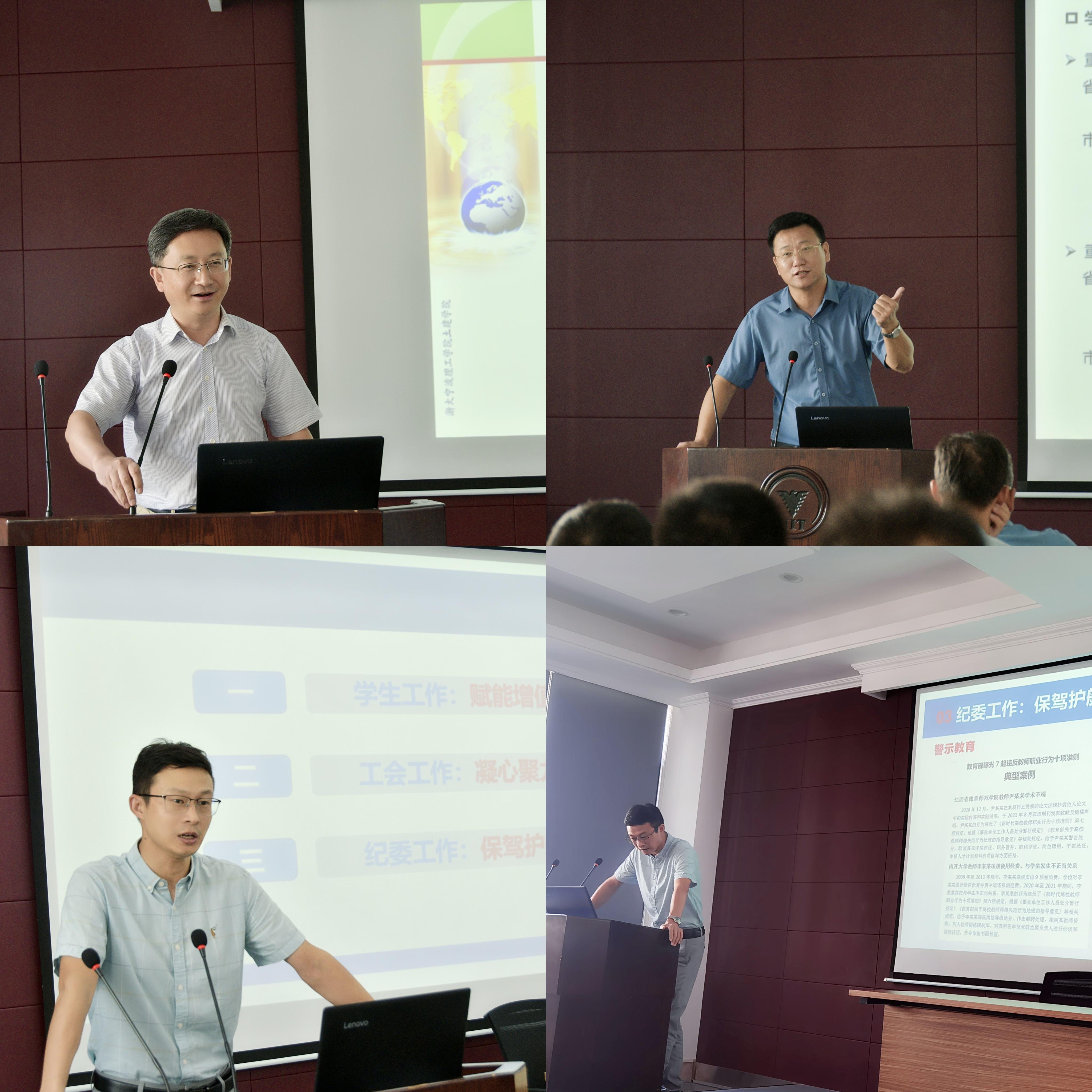 学院副院长王文军和耿健、副书记邬旭东分别汇报了2022年上半年教学、科研、专业建设、工程认证、学生工作、工会工作等工作开展情况,布置了下半年重点工作,并对新制定的文件进行了解读。