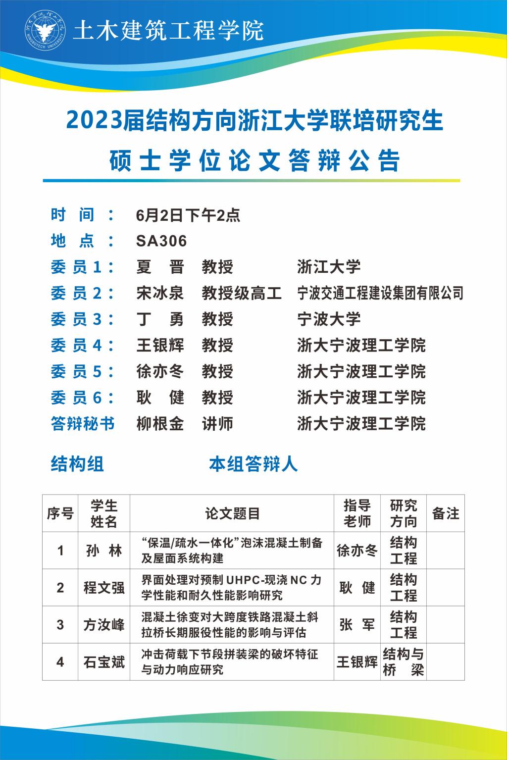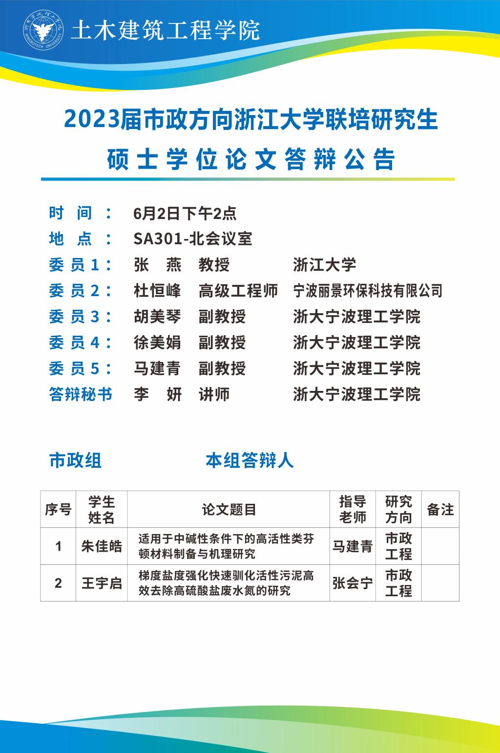 2023届浙江大学联培研究生硕士学位论文答辩公告