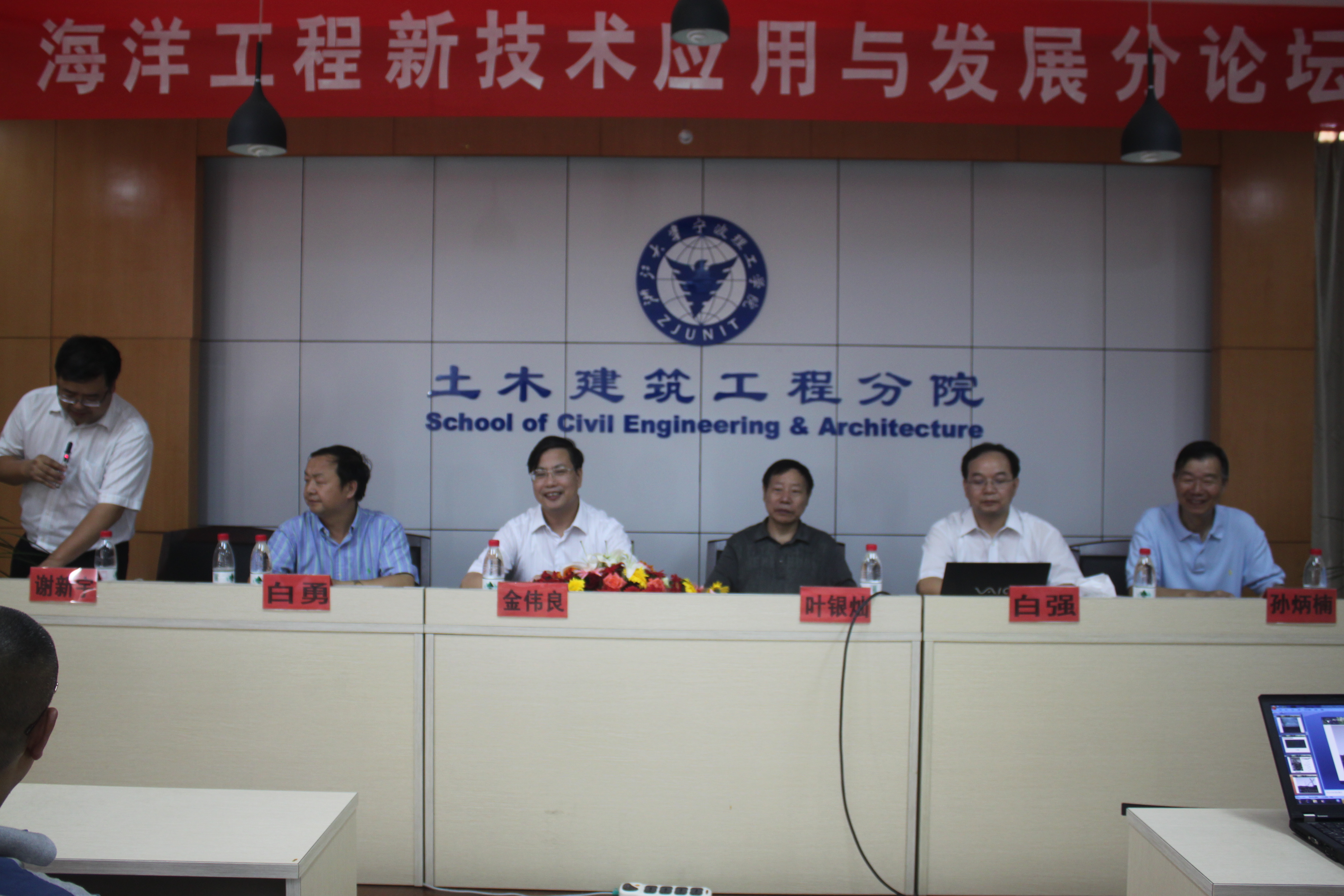 学院金伟良院长在致辞中说宁波海洋技术论坛是由宁波市科技局、宁波市教育局、浙江大学宁波理工学院和浙江省海洋学会联合举办的,论坛主要针对目前国内外海洋技术的发展和应用等前沿和热点问题进行研讨。土木工程对国民经济甚至是国家的发展都有着举足轻重的作用,与各行各业发展均有着密切的关系。在宁波市大力发展海洋经济的过程中,新的资讯和信息同时也给搞土木工程的人带来了新的发展契机。希望土建分院能够以此次论坛为发展契机,充分发挥专业优势,努力开拓专业方向,积极整合各方面的资源,深入关注目前土木工程涉海技术的发展和应用,能够为宁波市海洋经济的发展提供强大的技术平台和智力支持,为加强高校产学研结合以及服务地方经济贡献自己的力量!