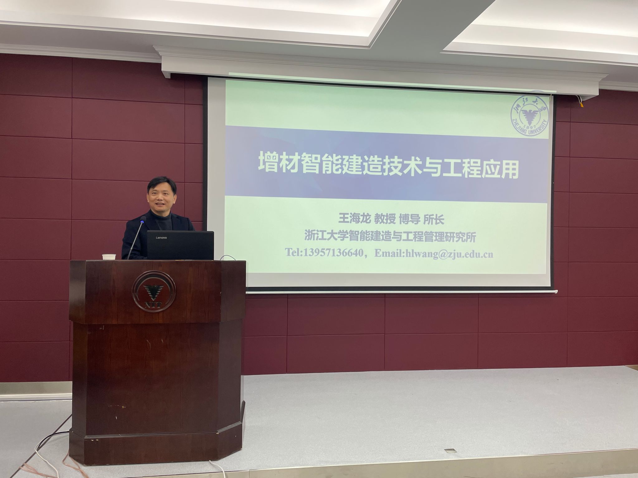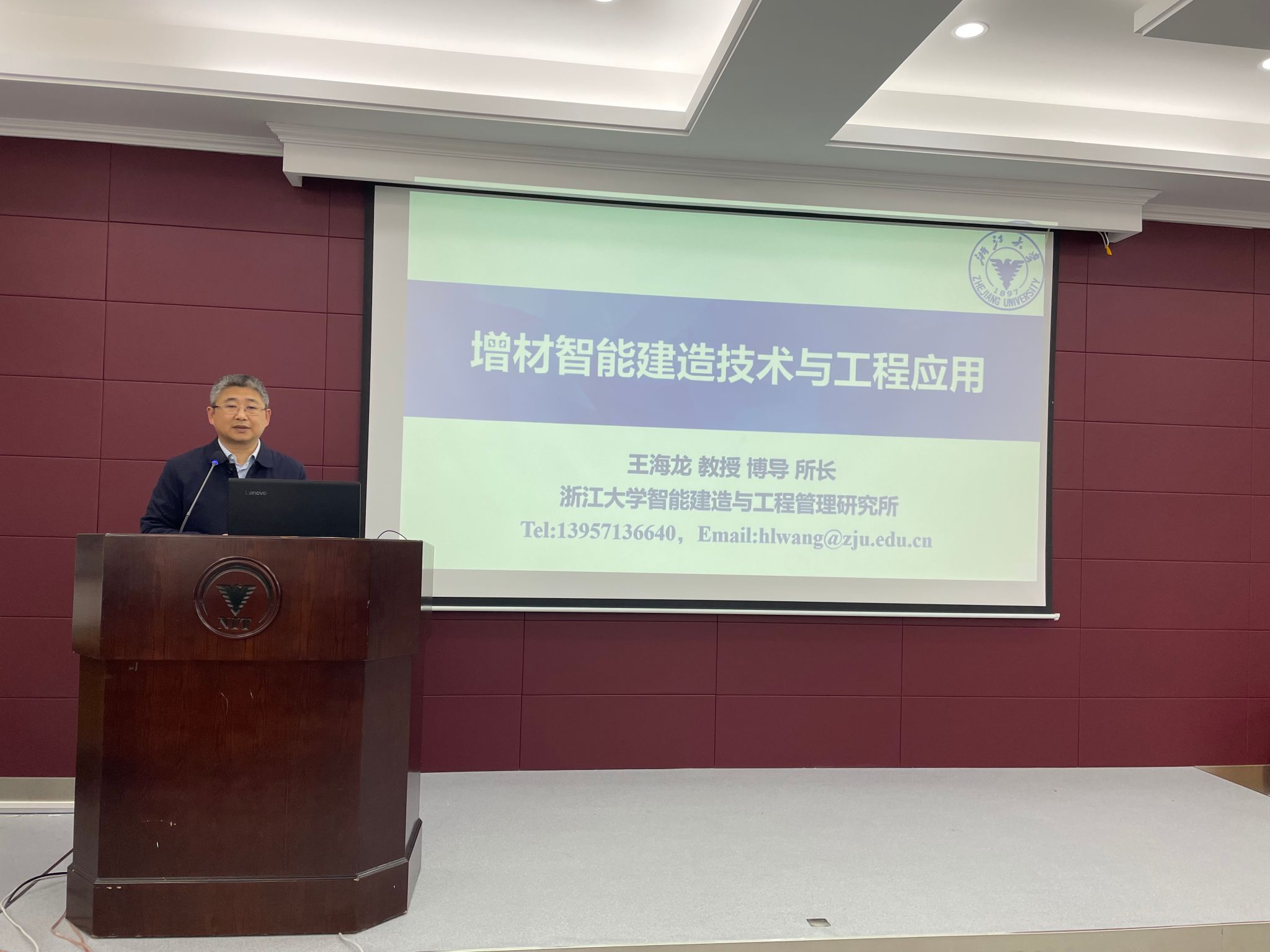 实地考察结束后,与会代表在bw必威西汉姆联官网参加“砼行论坛”学术报告,并进行了深入的技术交流。本次学术报告主题为“增材智能建造技术及其工程应用”,由浙江大学王海龙教授主讲,bw必威西汉姆联官网院长王银辉主持。