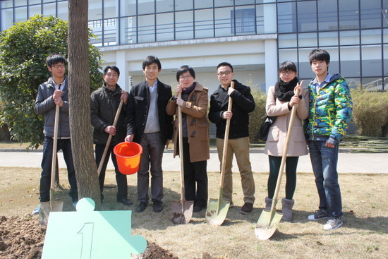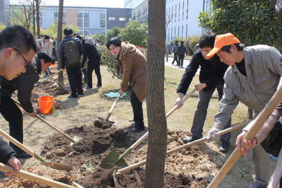 李萍萍老师、毕业班班导师周春晓老师及毕业生代表一同种下第一棵树,并将事先收集到的毕业生对母校的祝福装入“祝福罐”中,将“祝福罐”一同种下,象征土建师生“木常青·情长存”。随后,各毕业班班导师同本班毕业生代表种下属于自己班级的“毕业象征”,并于毕业林前合影留念。