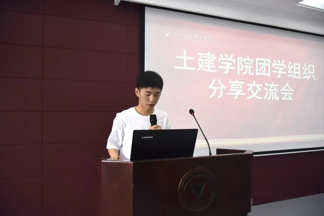 大会进入第二项议程,由卢一同学作为部长代表上台分享团学工作经验;在身为干事的时间里,经过上一任学长学姐的耐心指导,他迅速从懵懂新人成长为得力干事,在升任为部长后,他更是意识到自身的普通,身为学生权益的代表,学院运转的齿轮,学生团体的胶凝材料,我们必须收起傲慢,传递土建砼文化,发挥凝聚力、抗压性、可塑性、包容性。