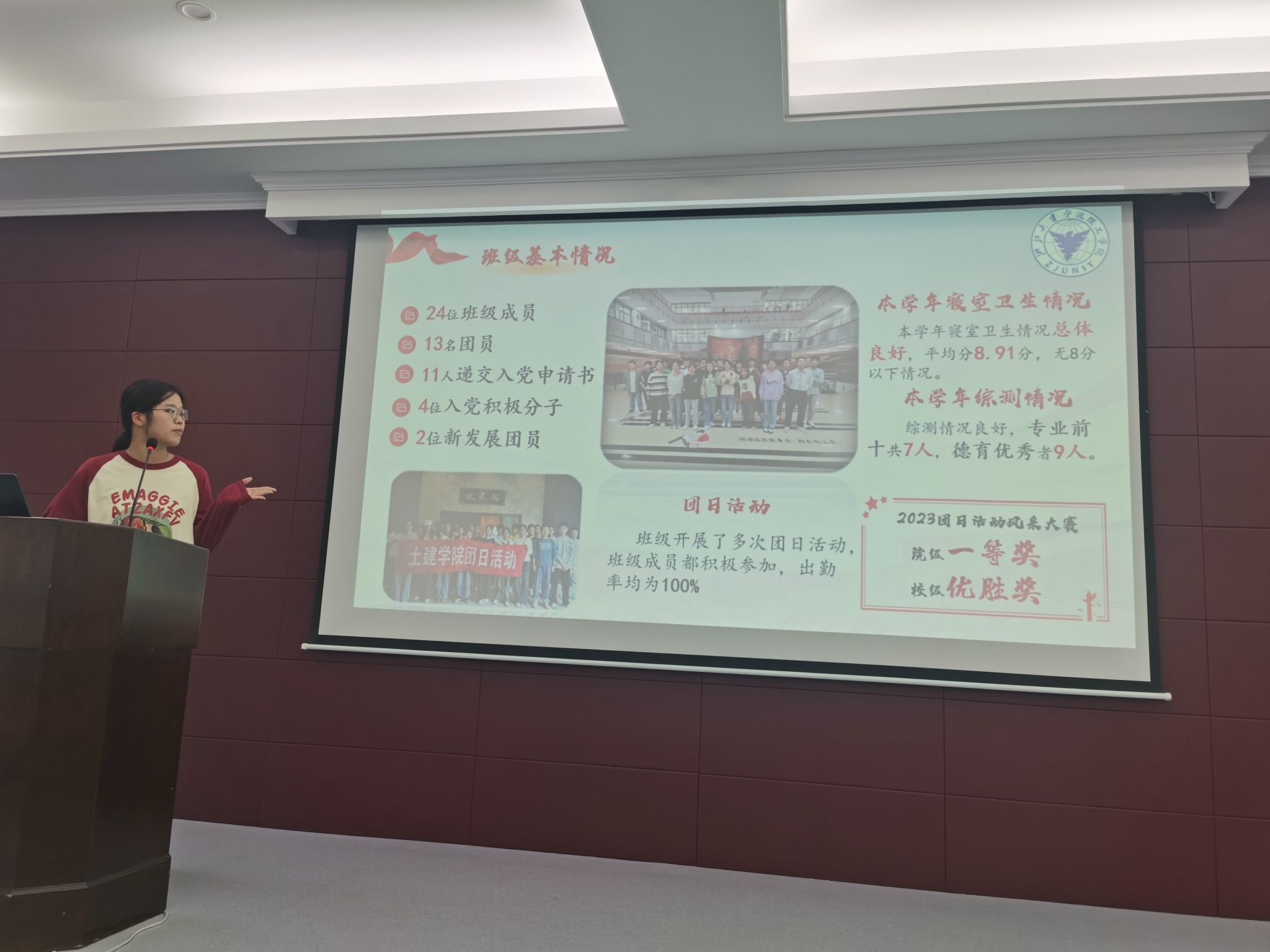 在此次评比中,各班代表从班级建设、学习纪律、学习成绩、寝室建设、集体荣誉等方面切入,对上一学年自己班级的具体情况进行了汇报,展现了各班同学认真学习、积极进取、专注创新的班级风貌。之后周星老师进行了总结,肯定了上一学年各班级在班级学风建设过程中的努力,并对在座班委的工作表示感谢。同时,她也指出了班级建设中存在的一些问题,希望同学们能相互学习,借鉴好的做法,争取下一学年有所改进。