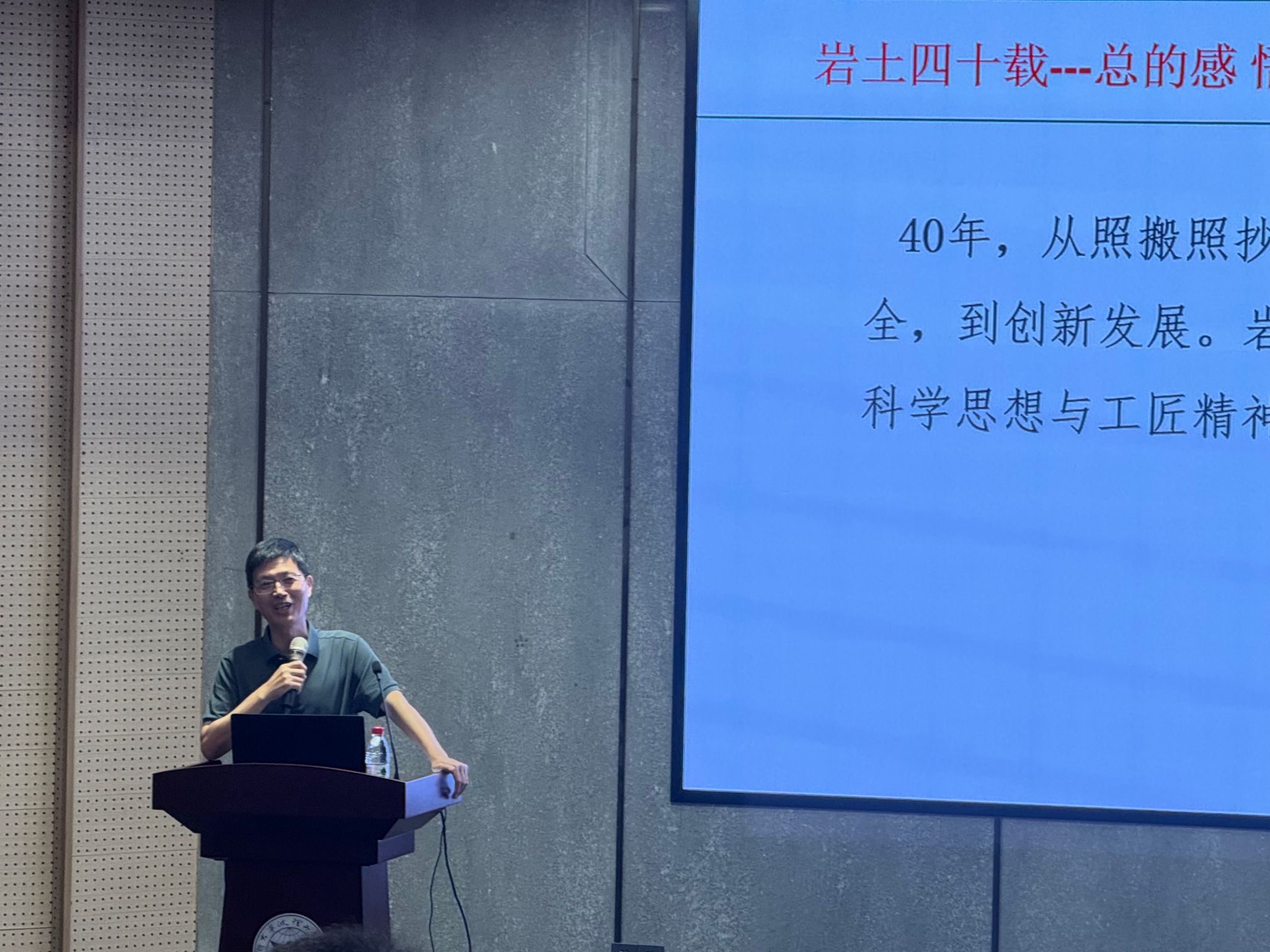 第三,岩土工作是匠心工程、良心工程。这是潘老师分享中最动情的一点。他郑重地表示,岩土工程关乎人民生命财产安全,每一个数据、每一份报告、每一项设计都承载着沉甸甸的责任。“我们的工作深埋于地下,外人看不见,但良心看得见。”他寄语在场同学,未来无论身处何种岗位,都必须坚守职业道德底线,以匠心守护工程品质,以良心铸就不朽工程。