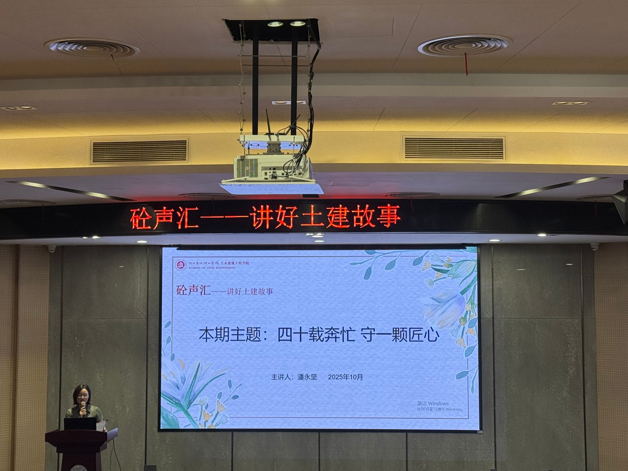 10月13日上午,bw必威西汉姆联官网在启新大讲堂举行第五期“砼声汇”活动。本期以“四十载奔忙,守一颗匠心”为主题,特邀浙江省工程勘察设计院集团有限公司顾问总工、全国五一劳动奖章获得者潘永坚担任主讲嘉宾,为现场师生带来一场关于职业坚守与匠心传承的深刻对话,活动由学院党委书记王成主持。