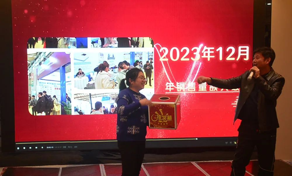 年会抽奖环节是必不可少的,值得一提的小插曲:为了犒劳辛勤工作的员工,公司董事长张福根博士、郭华总经理及生产总监等领导临场决定额外增加2名一等奖和5名二等奖抽奖名额。瞬间现场气氛达到了高潮,欢呼声和掌声此起彼伏,幸运儿们在欢笑声中收获了惊喜和喜悦。恭喜所有中奖的幸运儿,祝愿你们在2024年龙腾虎跃、好运绵绵!
