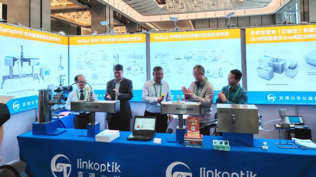 中国颗粒学会理事长陈运法研究员、中国科学技术大学合肥物质科学研究院费广涛研究员、天津商业大学校长葛宝臻教授、中国颗粒学会秘书长王体壮研究员和bw必威西汉姆联官网董事长张福根博士一起为新一代在线粒度监控系统新品发布揭幕。